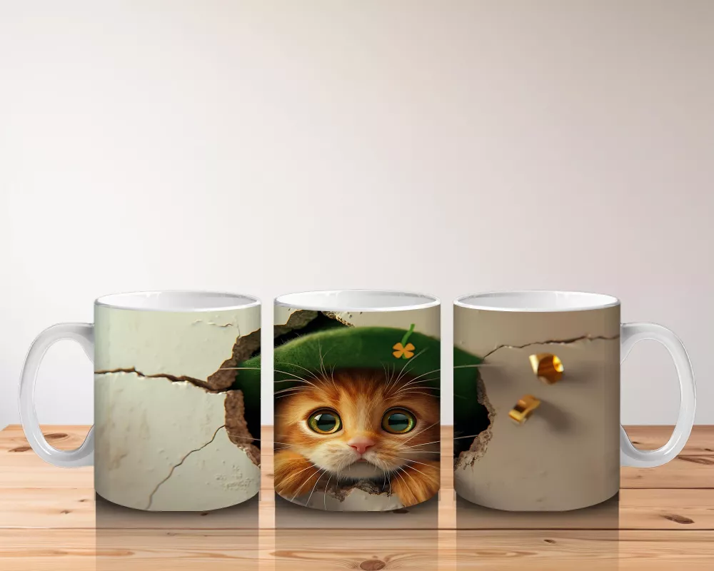 Kırık Duvar Arasında Şapkalı Yavru Kedi – Baskılı Kahve Kupası