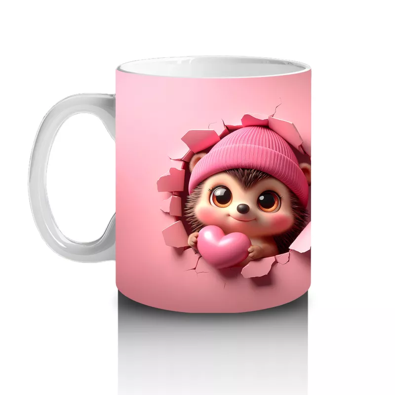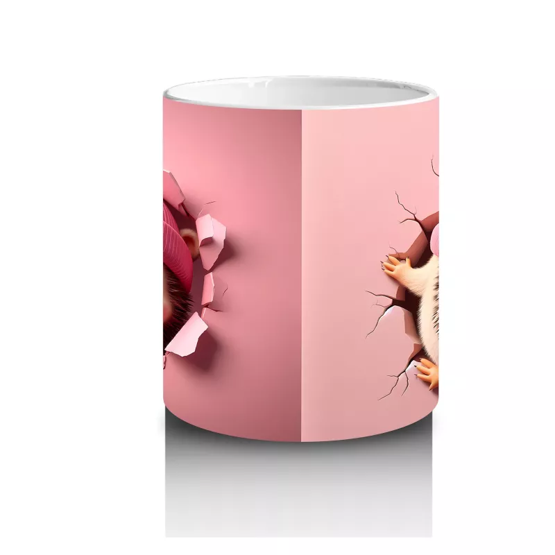 Pembe şapkasıyla bakışlarını size çeviren bu minik kirpi, beklenmedik bir tatlılık sunuyor. Farklı ve sempatik bir kupa arayanlar için neşeli bir seçim.