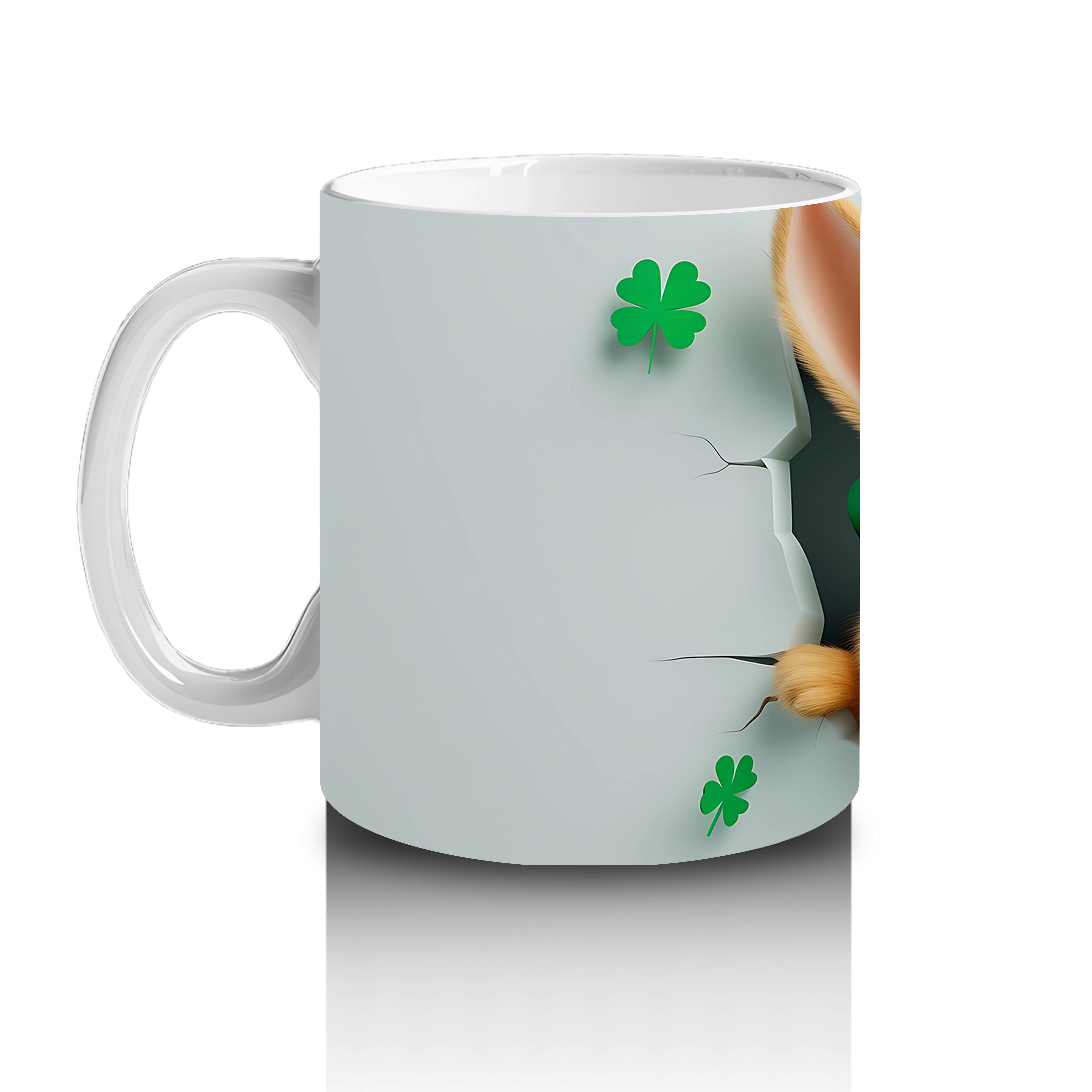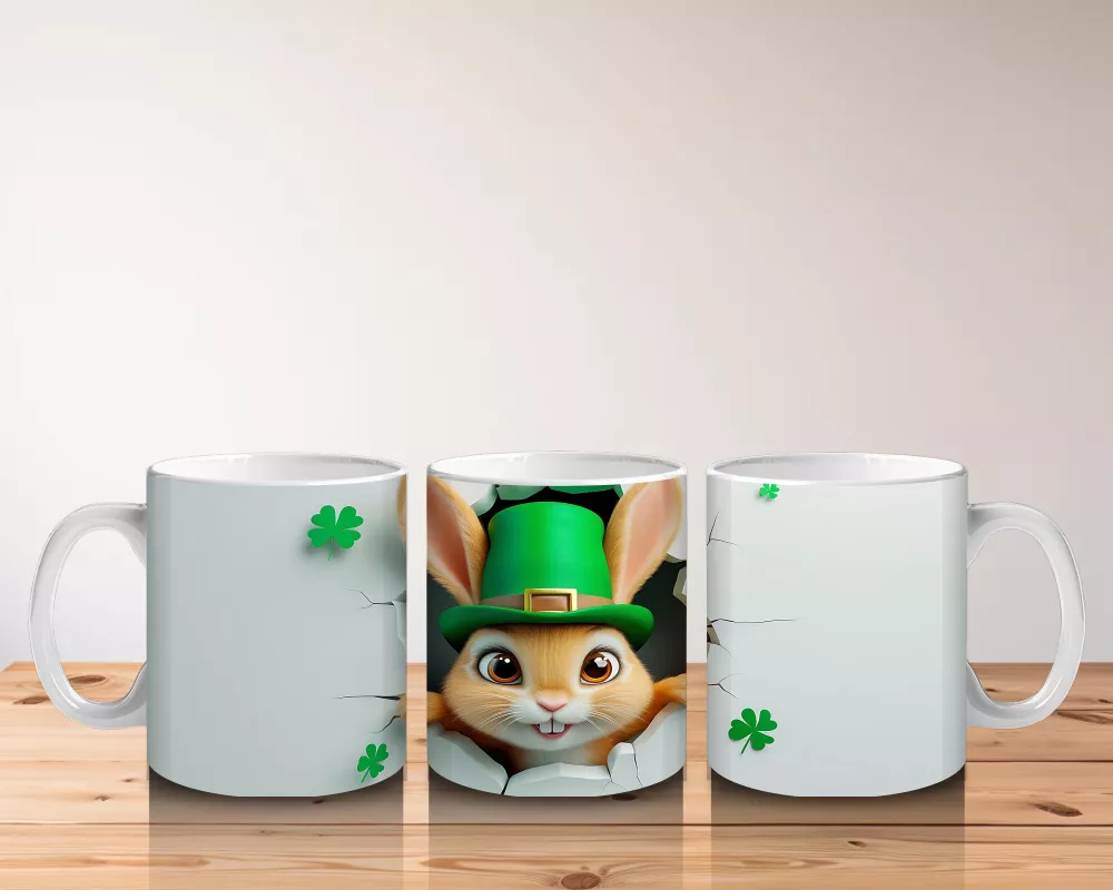 Leprechaun Şapkalı Sevimli Tavşan Figürü – Baskılı kahve kupası