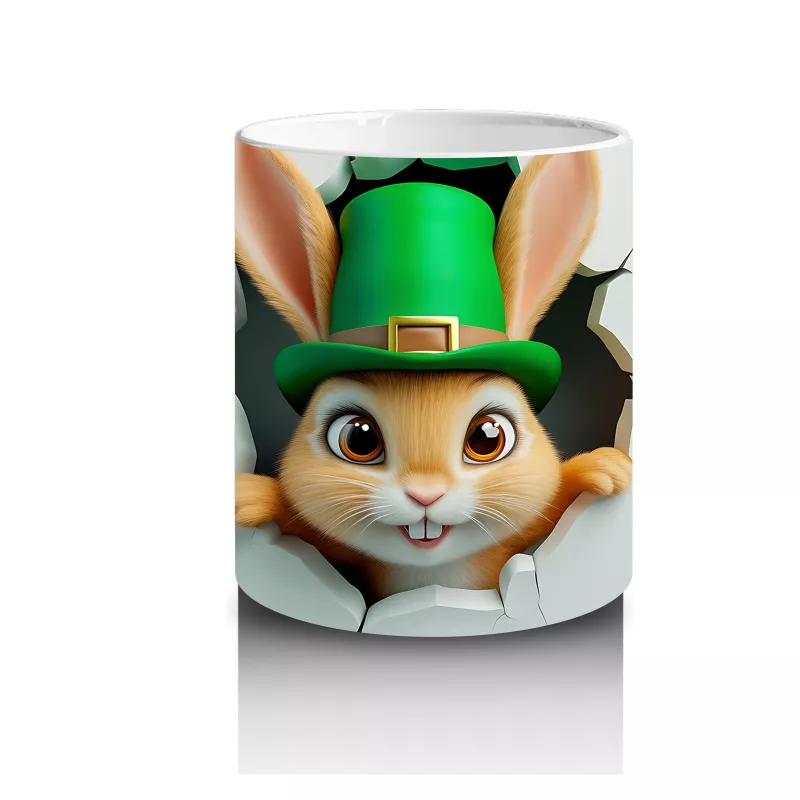 Leprechaun Şapkalı Sevimli Tavşan Figürü – Baskılı Kahve Kupası