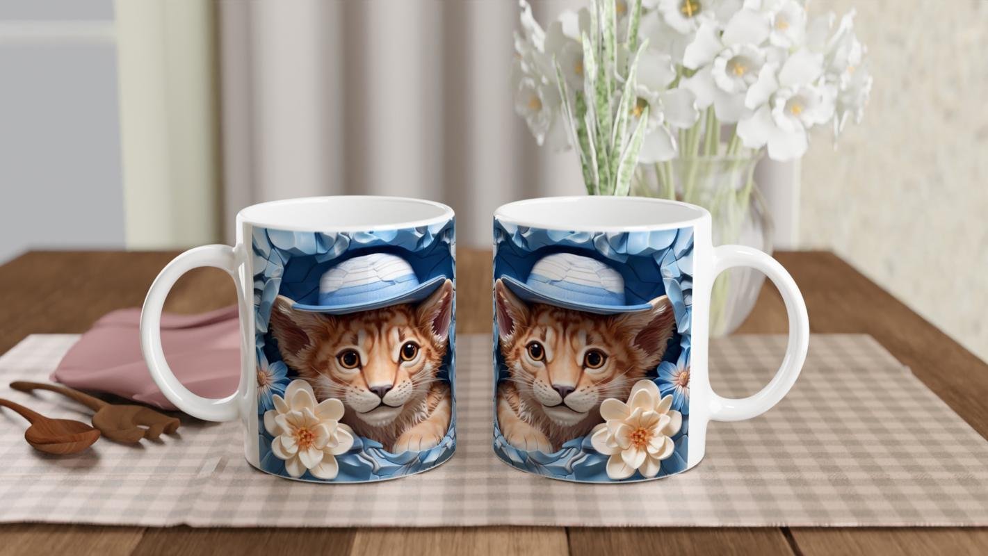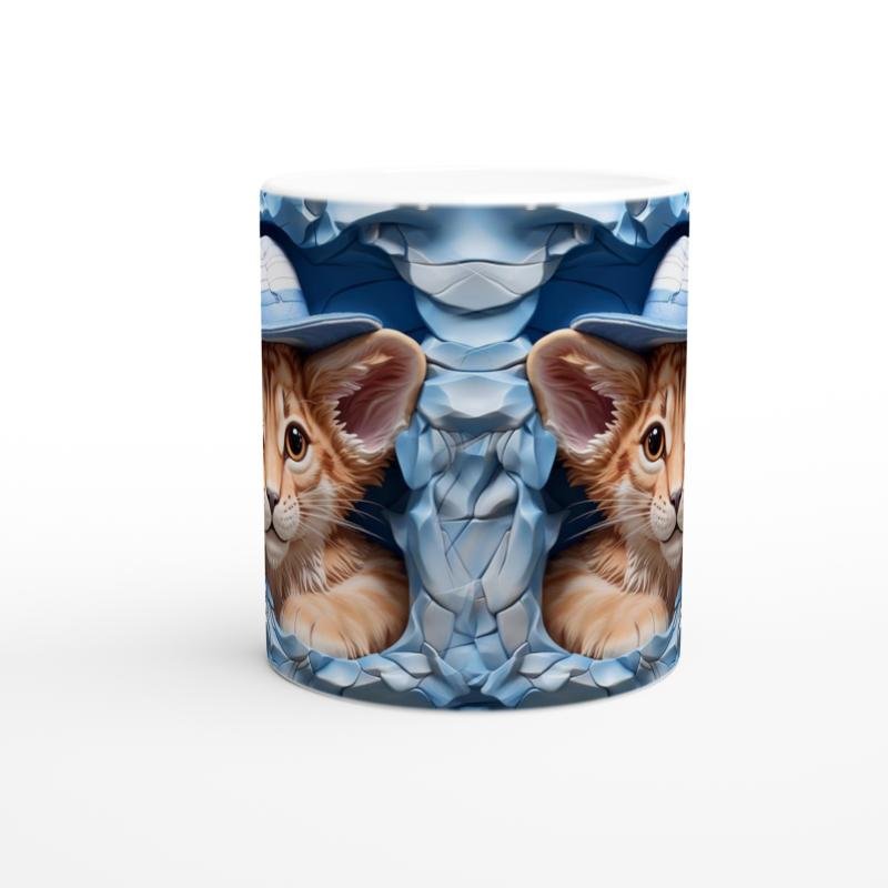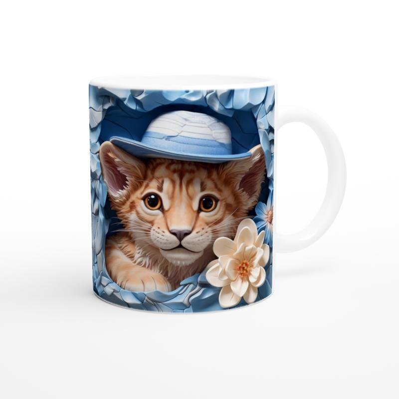Yavru kaplan baskılı kupa, şirin bakışları ve mavi şapkasıyla doğanın zarafetini ve masumiyetini bir araya getiriyor.