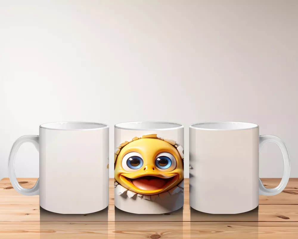 Duvar Arasından Bakan Sevimli Sarı Balık İllüstrasyonu – Baskılı Kahve Kupası