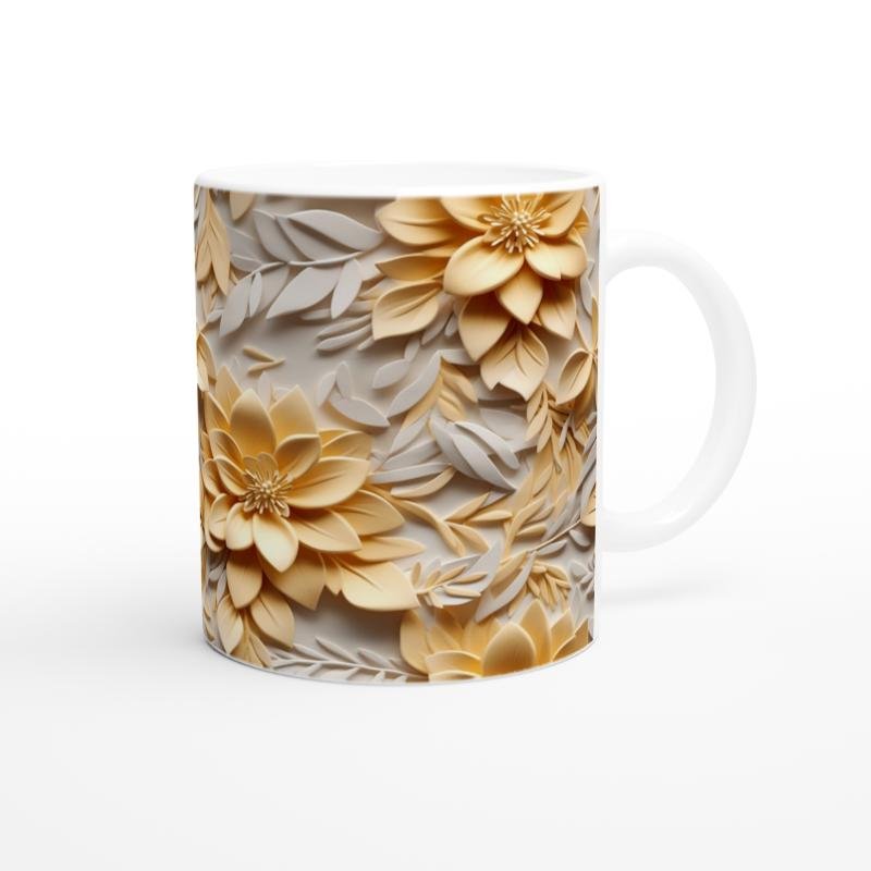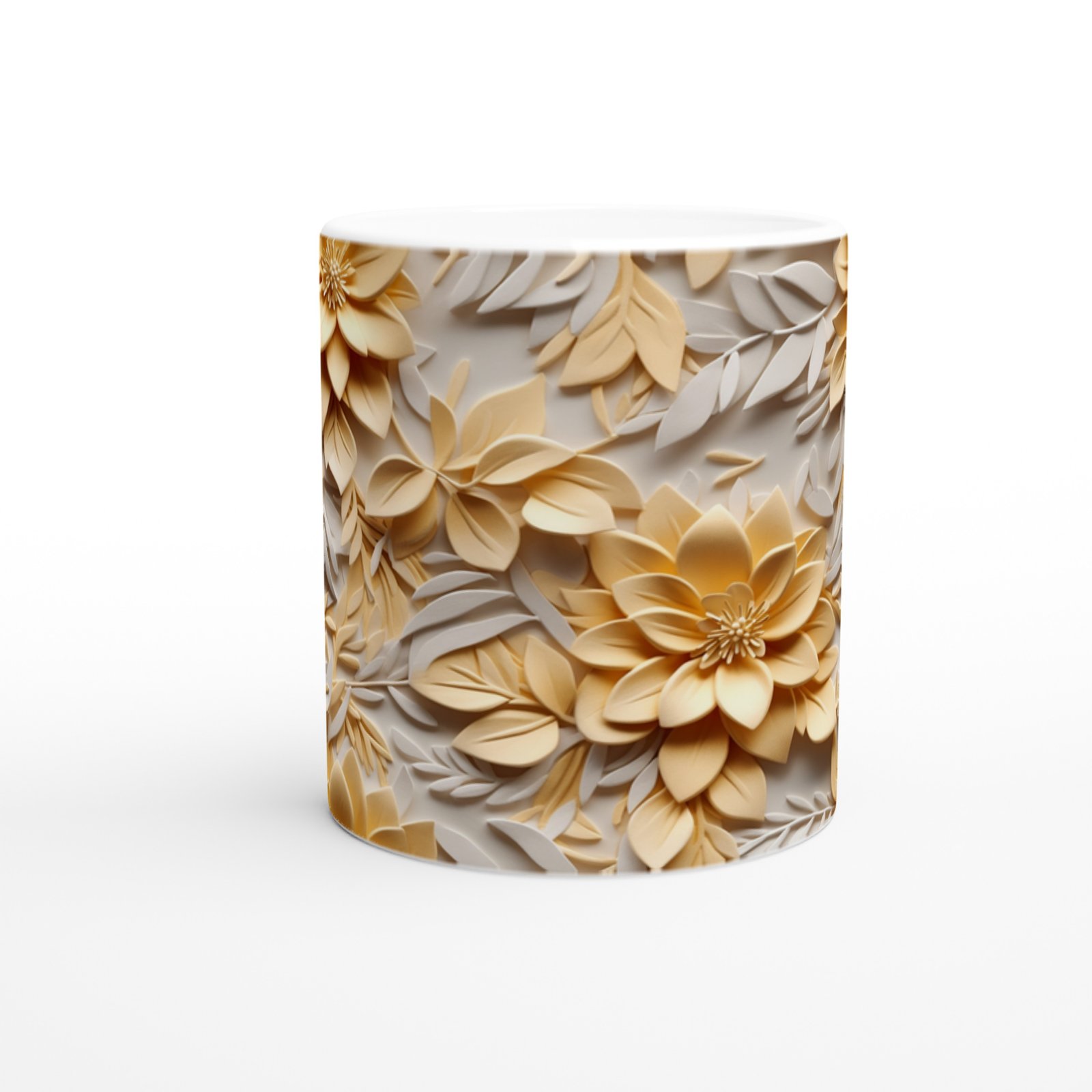 Kat kat açılmış çiçek motifleri ve akıcı yaprak hatları sayesinde bu özel tasarım kupa bardak, hem lüks bir görünüm hem de estetik bir kullanım sunuyor.
