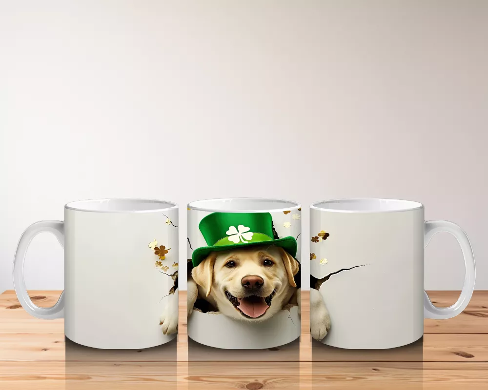 Şapkalı Sarı Köpek ve Yeşil Arka Plan – Baskılı Kahve Kupası