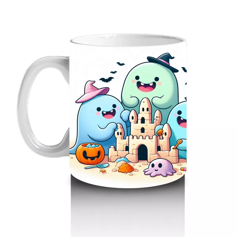 Sevimli hayaletler ve rengarenk şekerlemeler temalı bu kupa bardak, Cadılar Bayramı kutlamalarınıza tatlı bir dokunuş yapar.