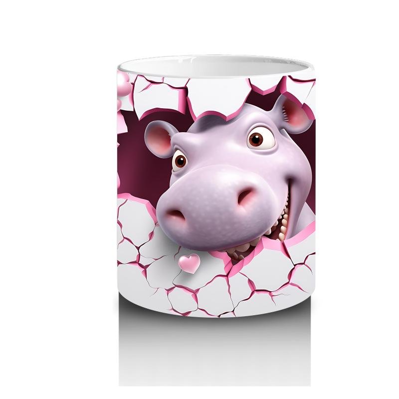 Çocuklara Sütü Sevdiren Kırık Kalp İçindeki Sevimli Su Aygırı Kupa Bardak