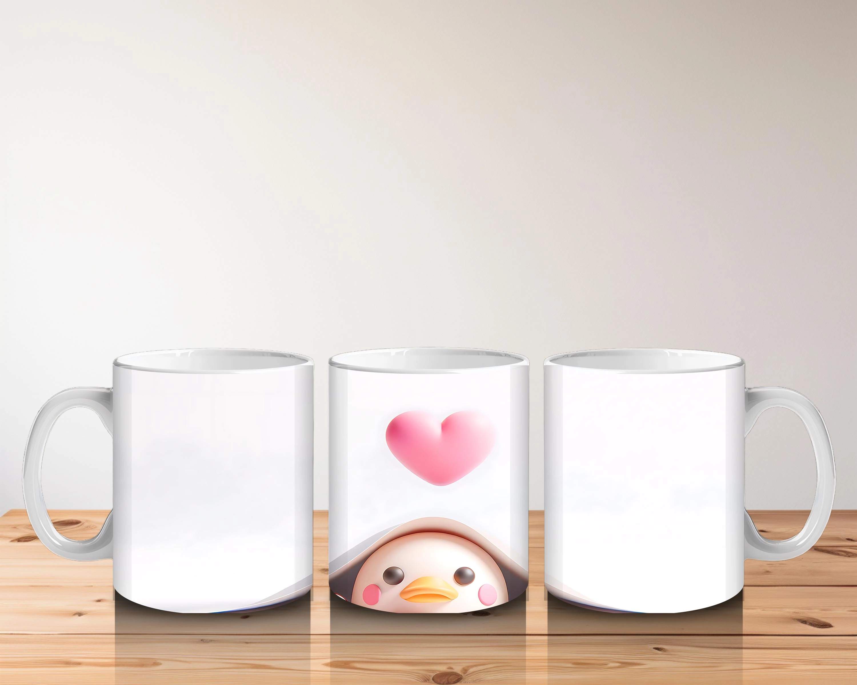 Pembe Kalpli Fon Üzerinden Bakan Sevimli Civciv – Baskılı kahve kupası