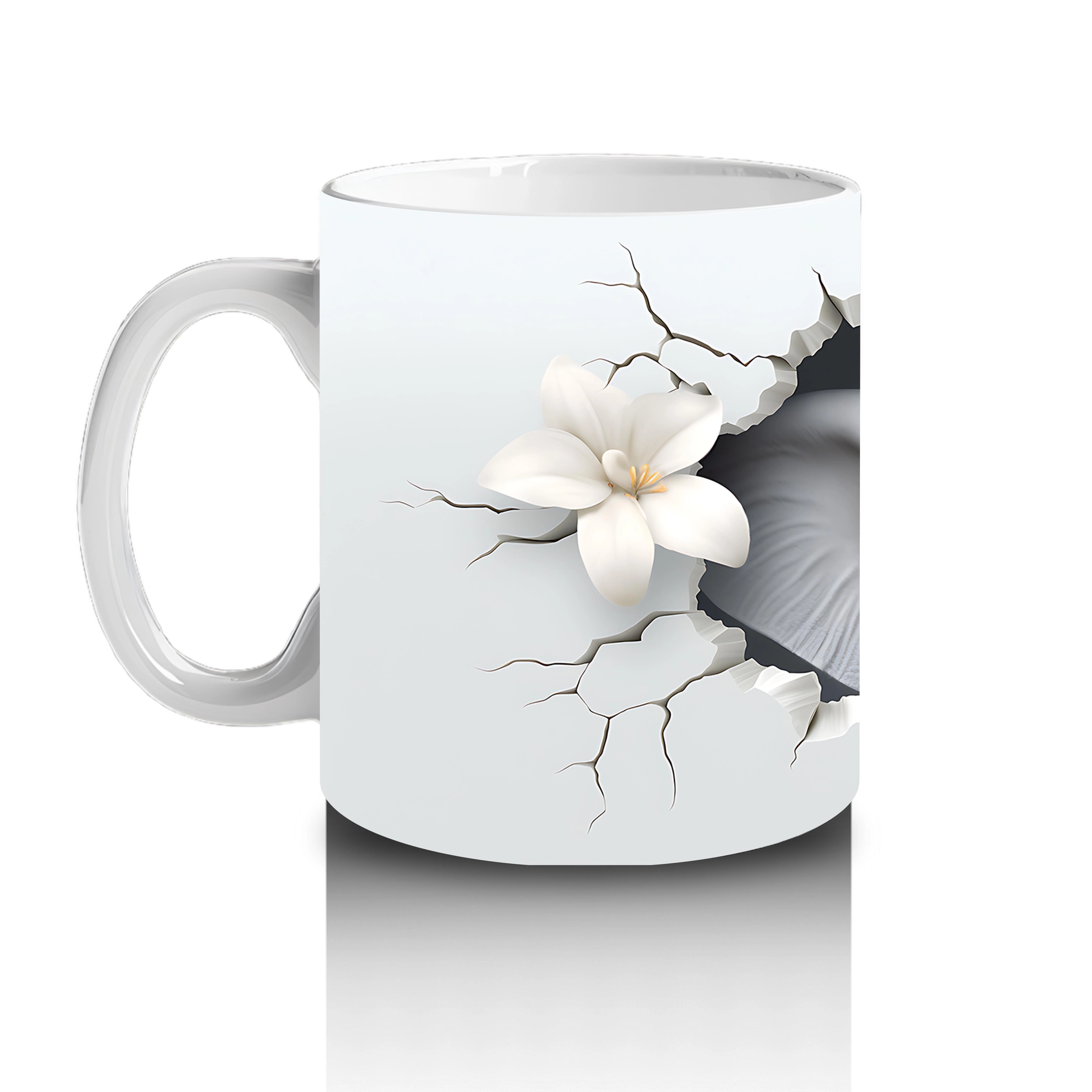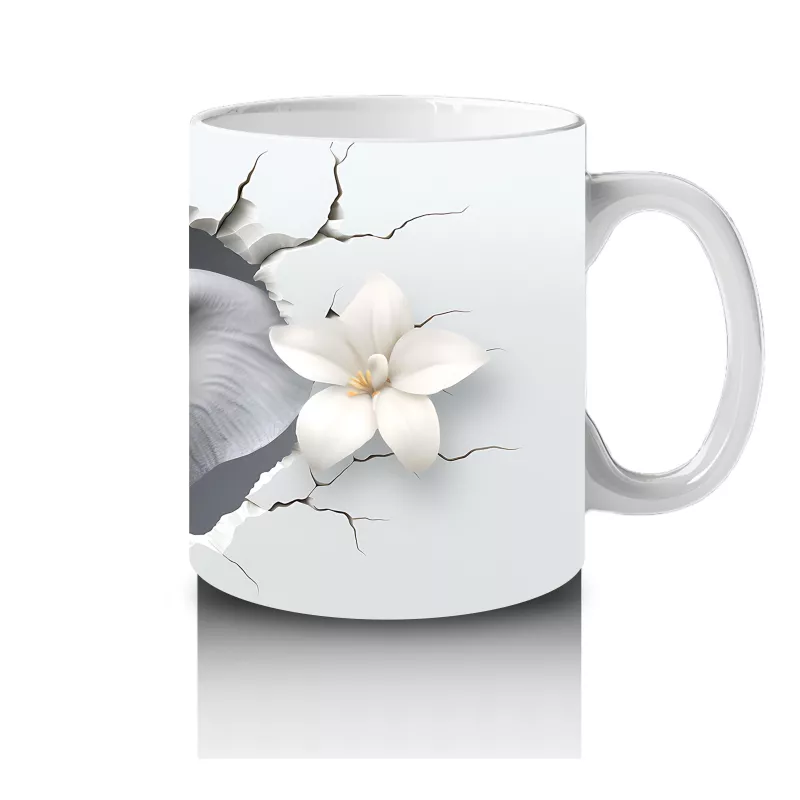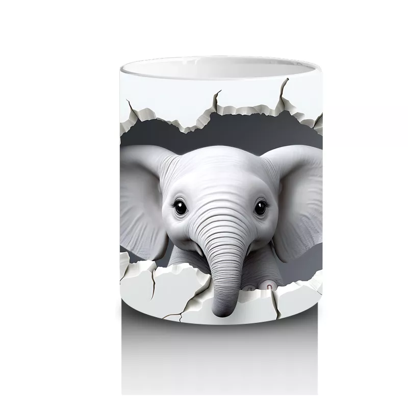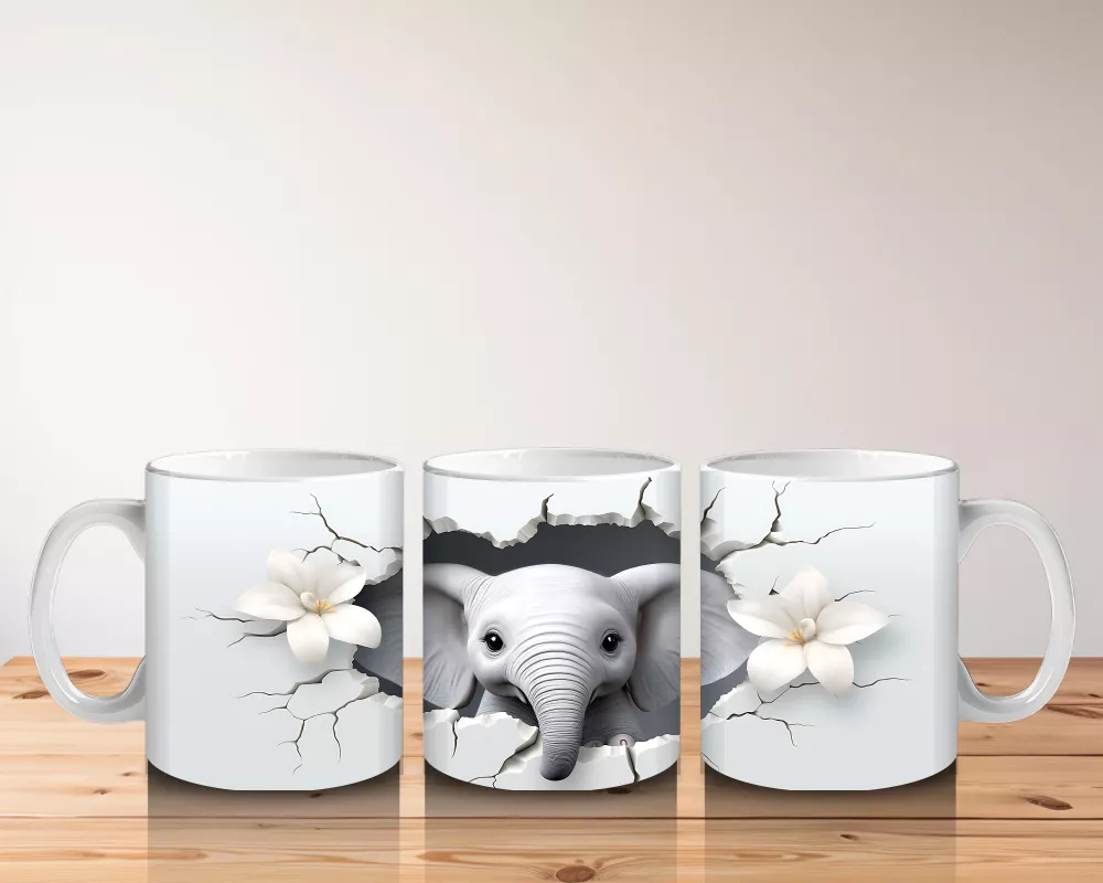 Beyaz Çiçekler Arasında Sevimli Fil – Baskılı Kupa