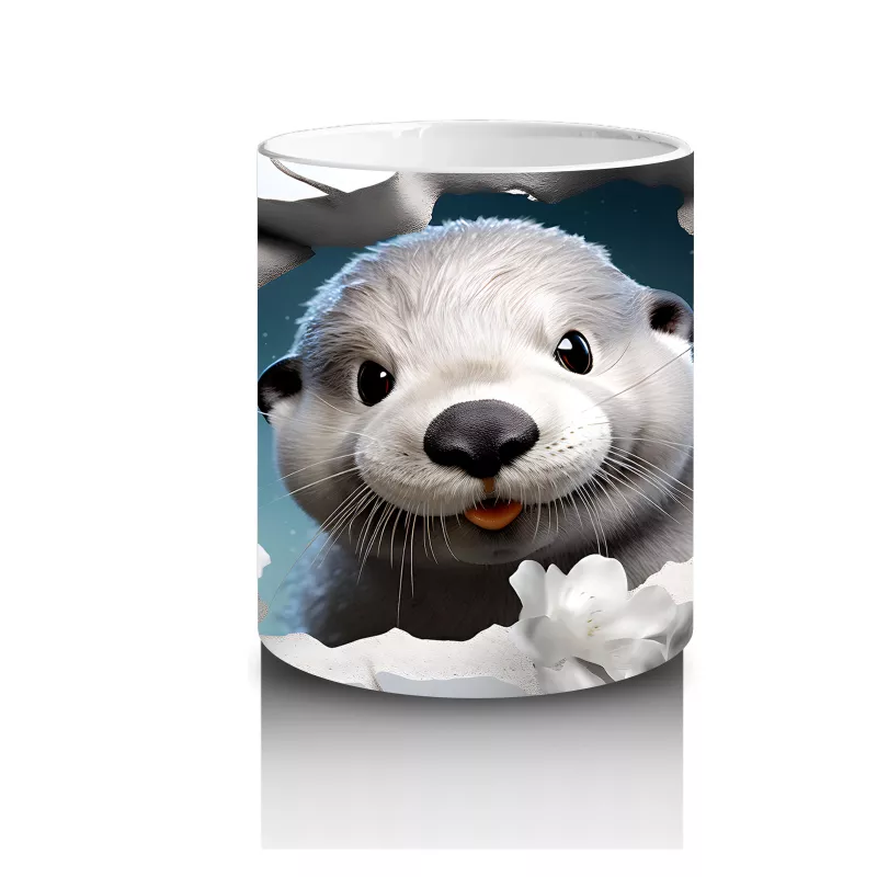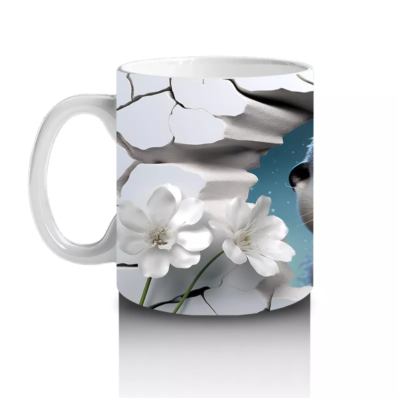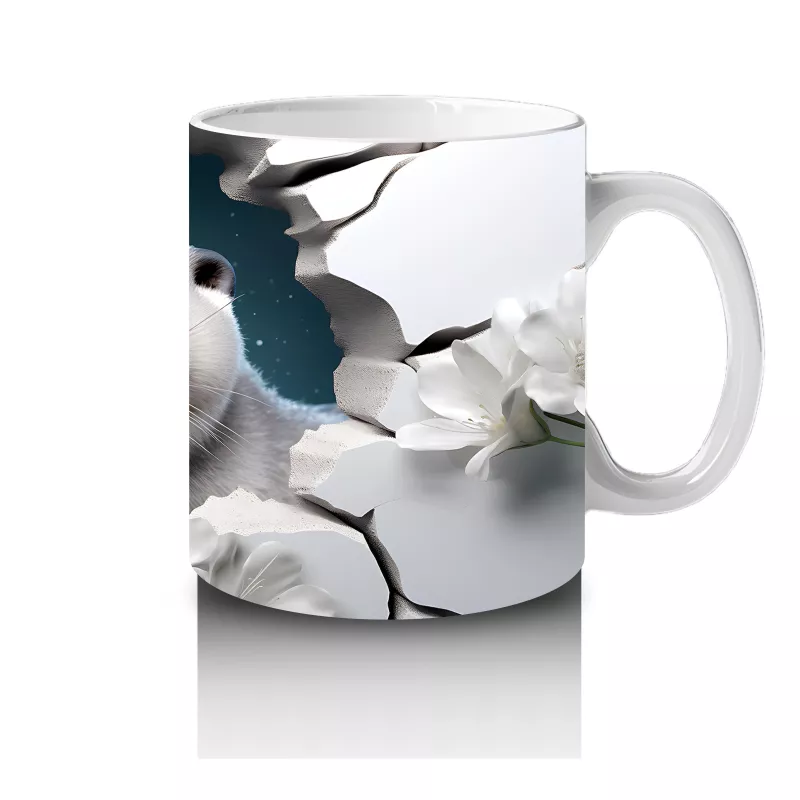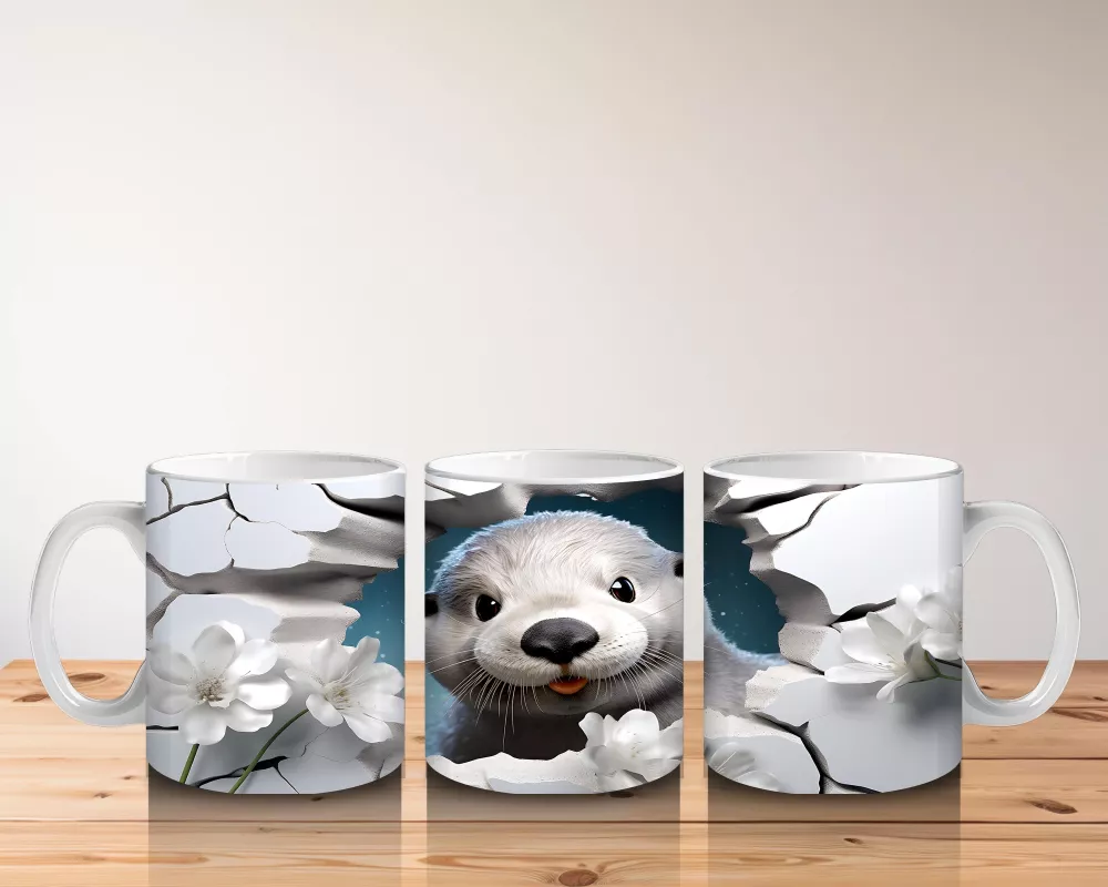 Beyaz Çiçeklerle Çevrili Duvar Arasında Sevimli Fok Yavrusu – Baskılı Kahve Kupası