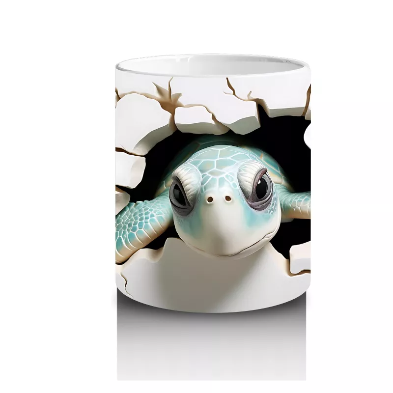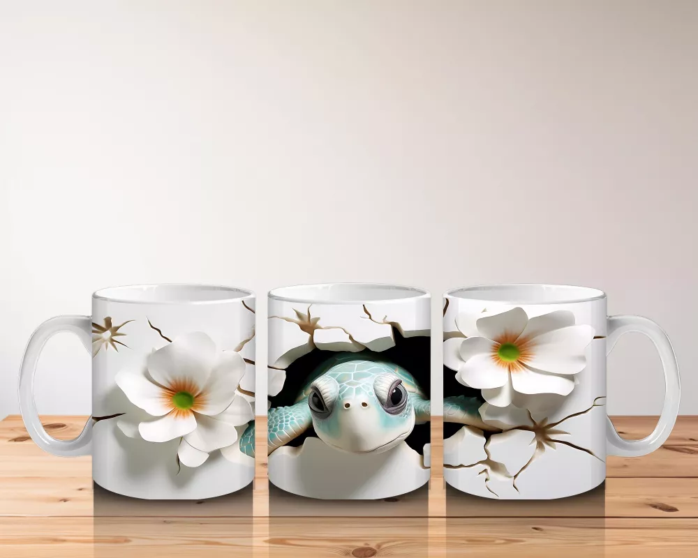 Beyaz çiçekler arasında huzurla bakan bu minik kaplumbağa, sadeliği ve doğallığı sevenler için sakin bir kahve deneyimi sunuyor. Doğa temalı zarif bir hediye arayanlara özel.