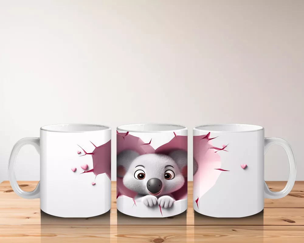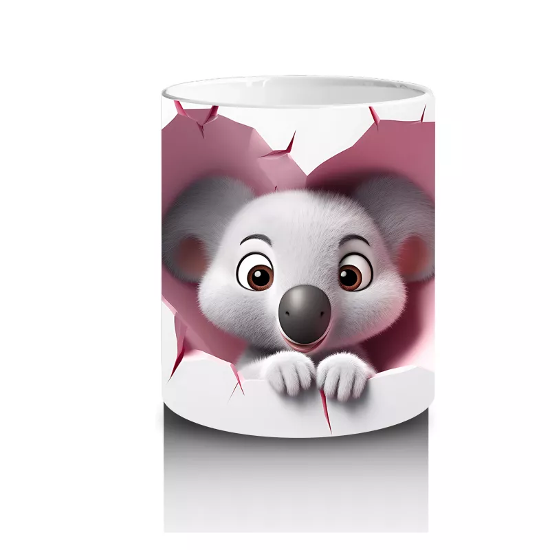 Pembe Duvarı Delen Sevimli Koala – Baskılı Kahve Kupası