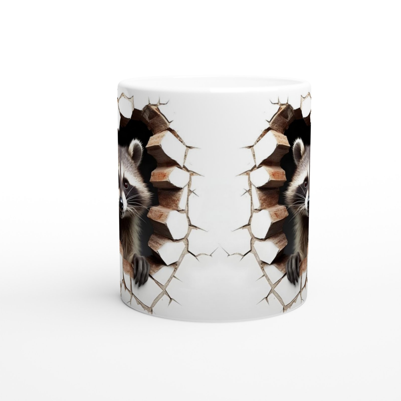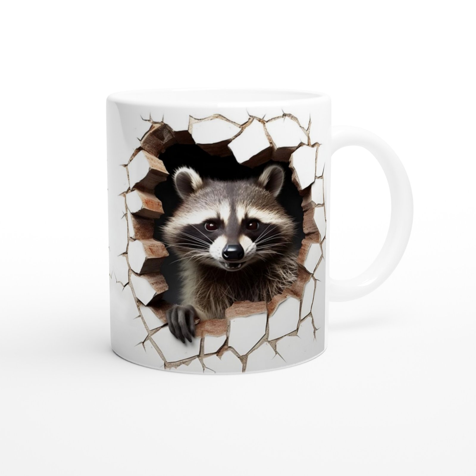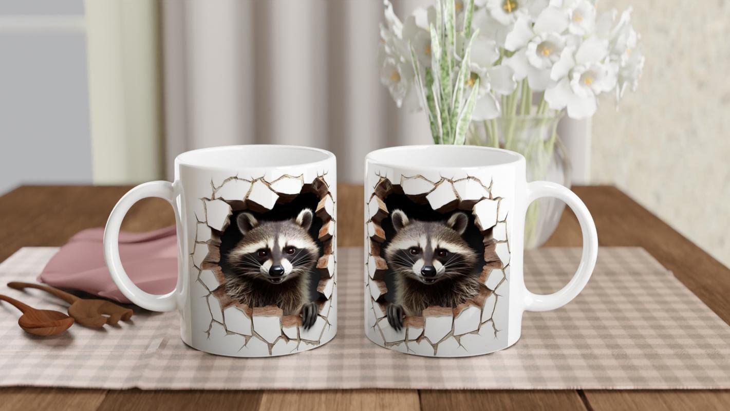 Duvarı patlatıp dışarı çıkan sevimli rakun tasarımıyla bu kupa bardak, sıradanlıktan uzak, enerjik bir stil sunuyor.