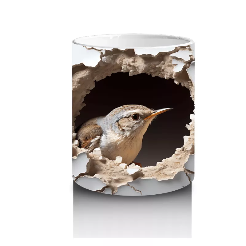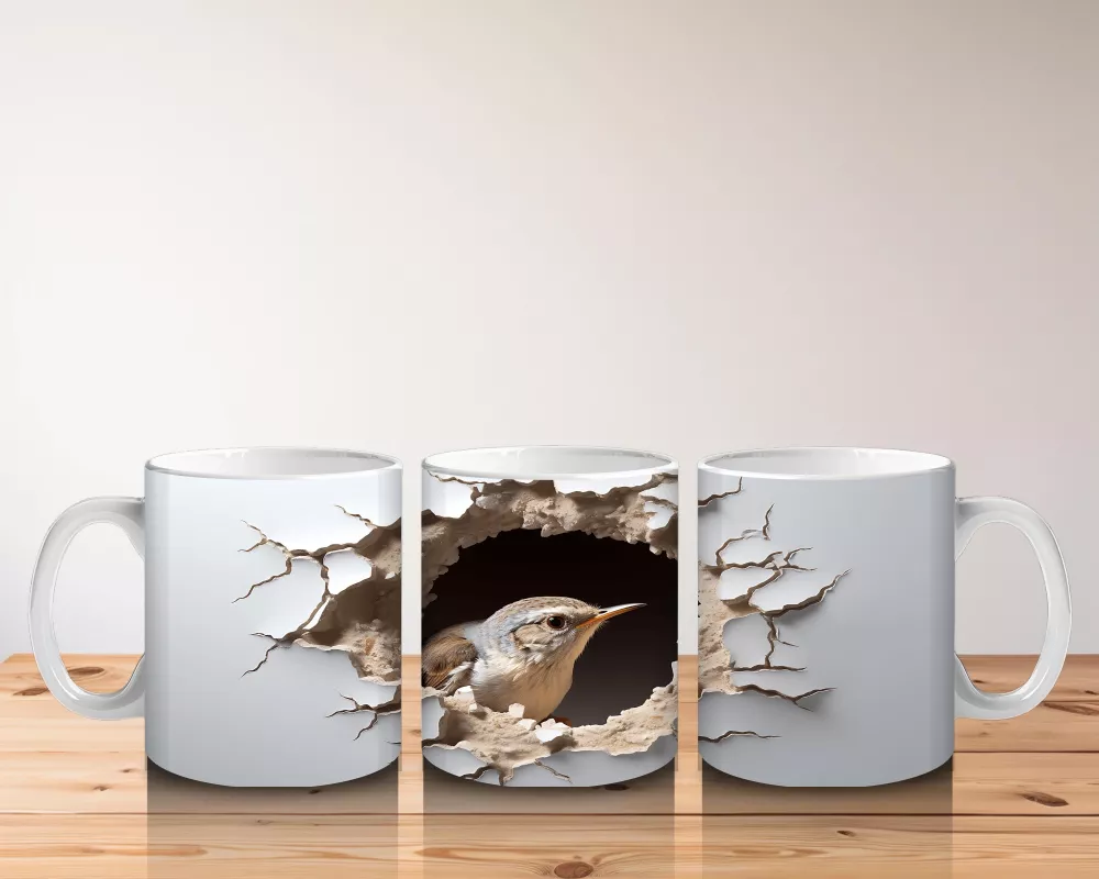 Kırık Duvar Efektli Sevimli Serçe – Baskılı Kahve Kupası