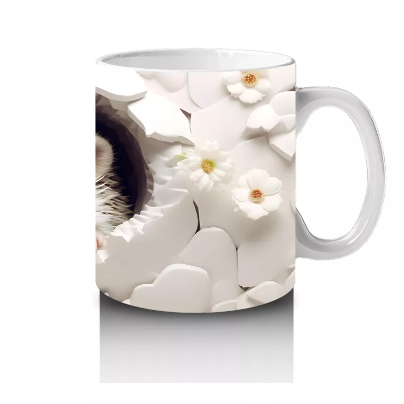 Beyaz çiçeklerle süslenmiş arka planda yer alan bu sevimli tilki, doğallığı ve zarafetiyle dikkat çekiyor. Yumuşak renklerle tasarlanmış, sıcak ve şirin bir kupa modeli.