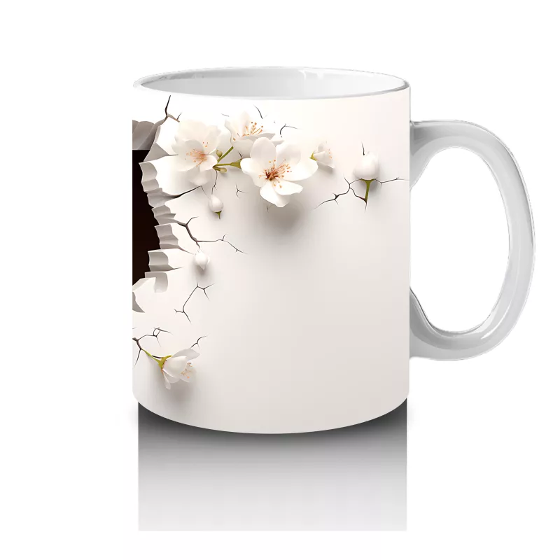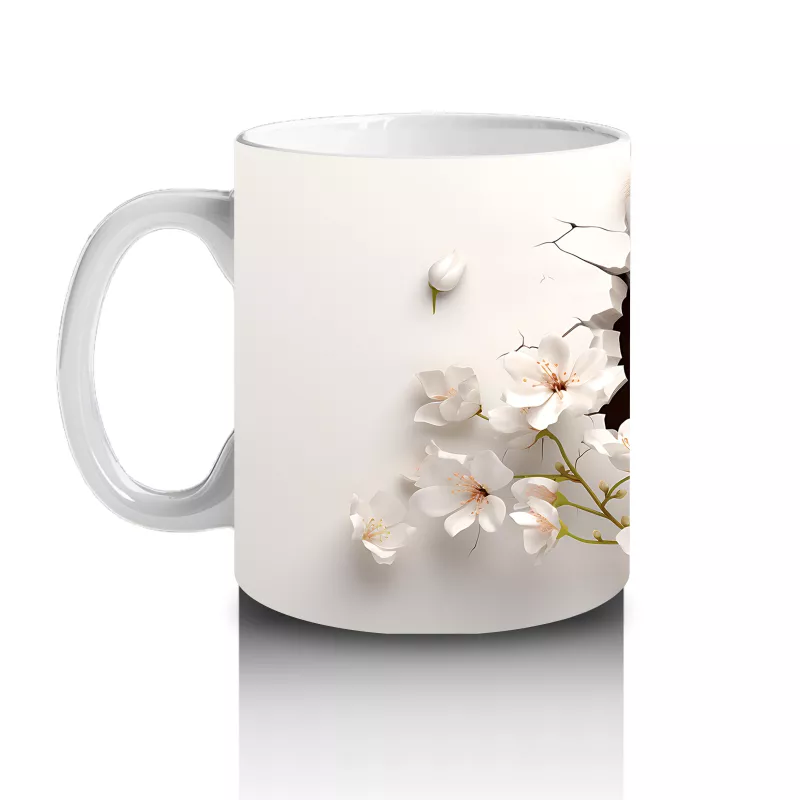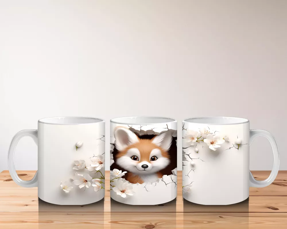 Beyaz Çiçekli Fon Üzerinde Sevimli Tilki – Baskılı Kahve Kupası