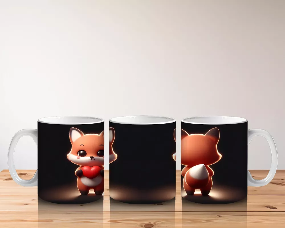 Ön ve Arka Yüzüyle Sevimli Tilki Karakteri – Baskılı Kahve Kupası