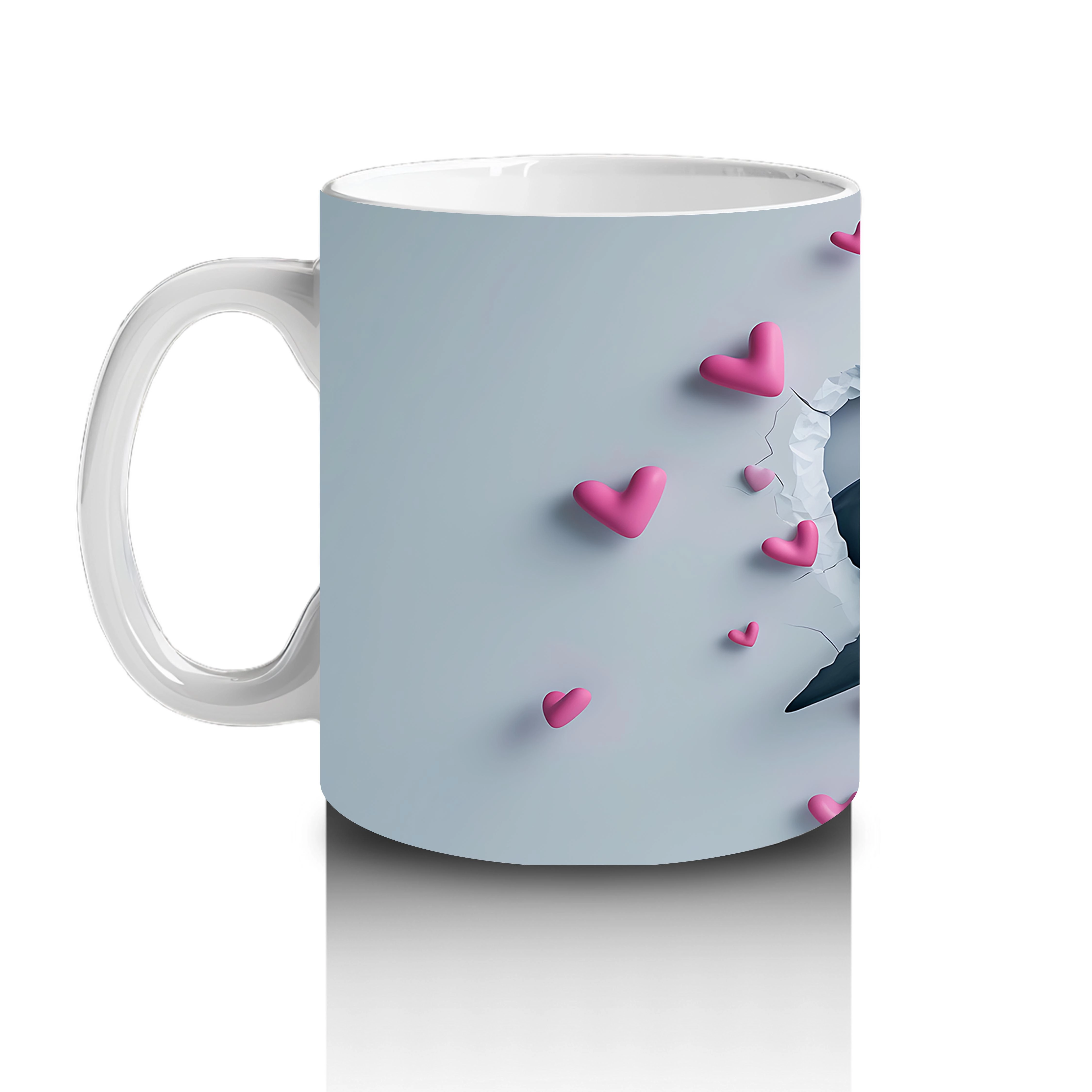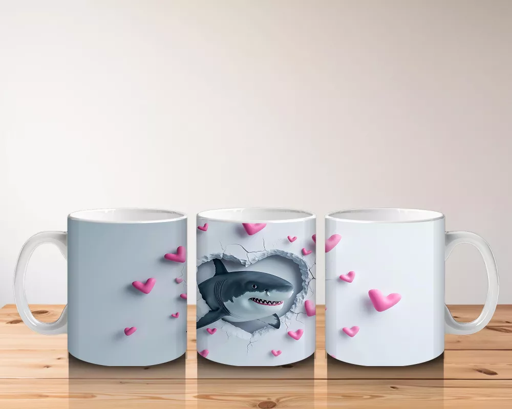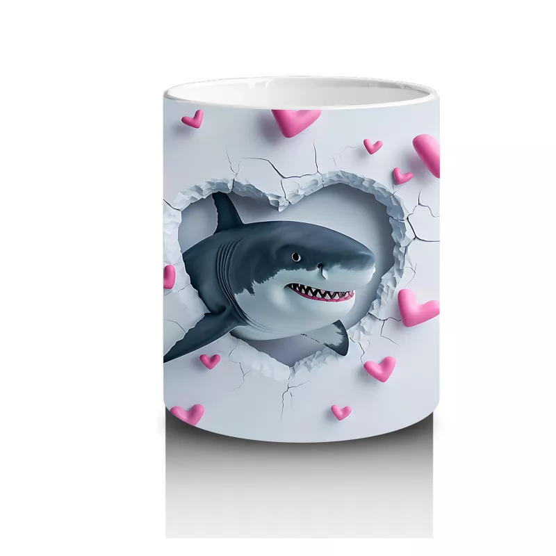 Pembe kalplerin ortasında neşeyle bakan sevimli yunus, deniz tutkunlarına özel şirin bir tasarım. İç ısıtan bu kupa, her kahve molasına neşe katıyor.