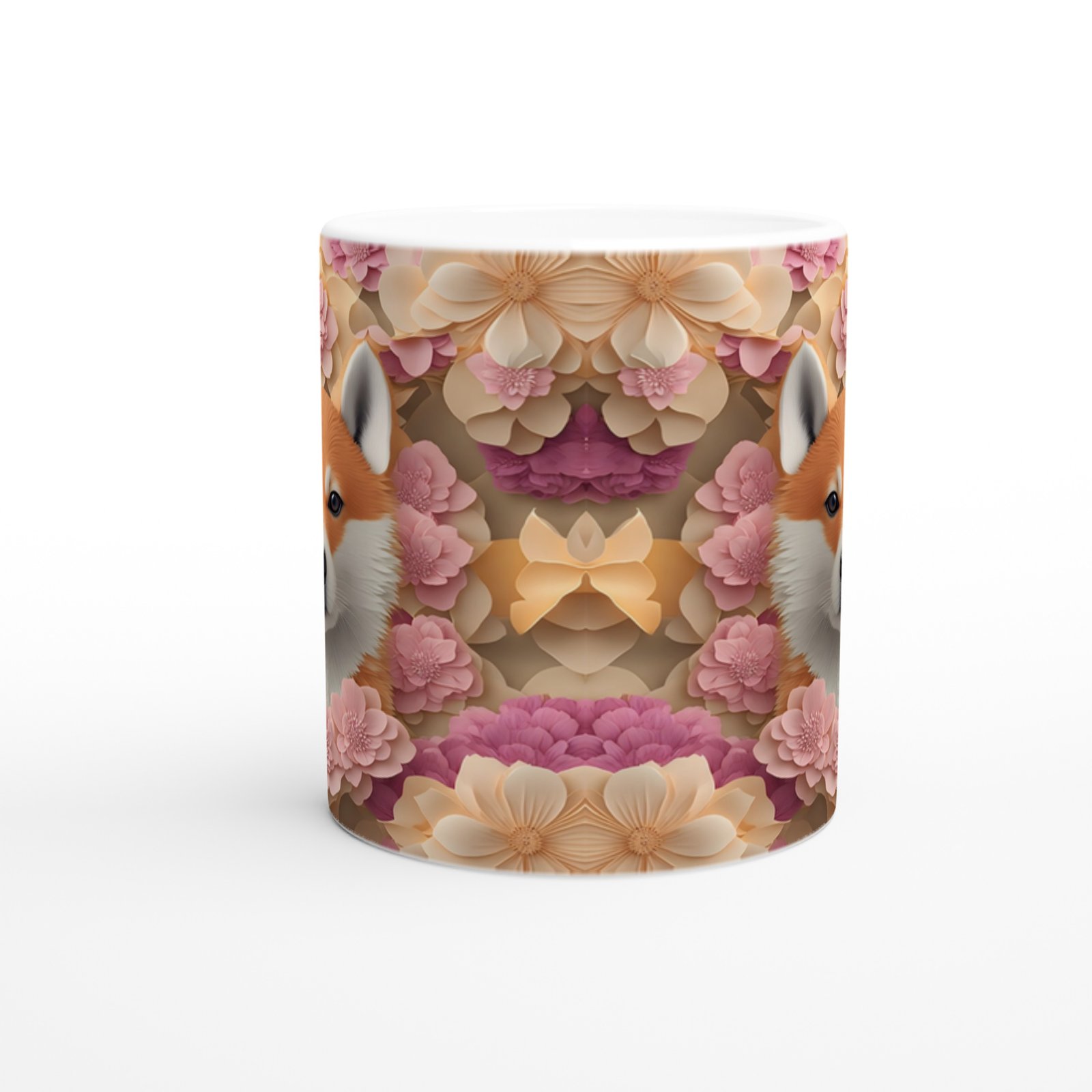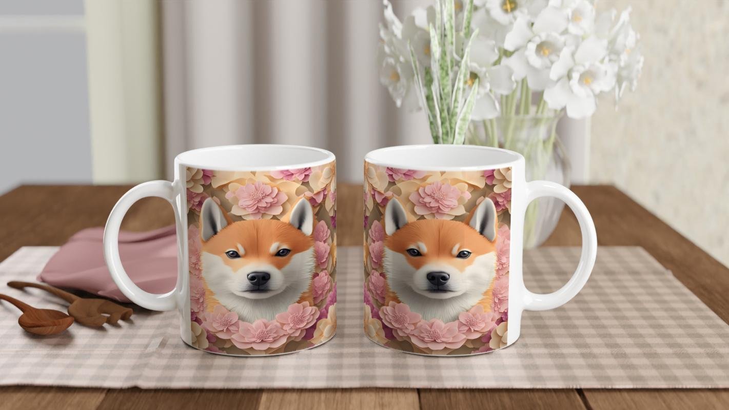 Pastel tonlarda çiçeklerin arasında konumlanmış zarif Shiba Inu figürü, çiçekli shiba inu kupa ile hem doğa hem de hayvan sevgisini bir arada sunuyor.