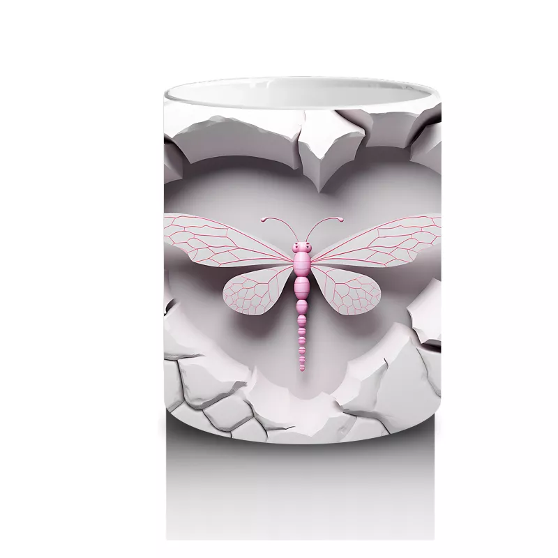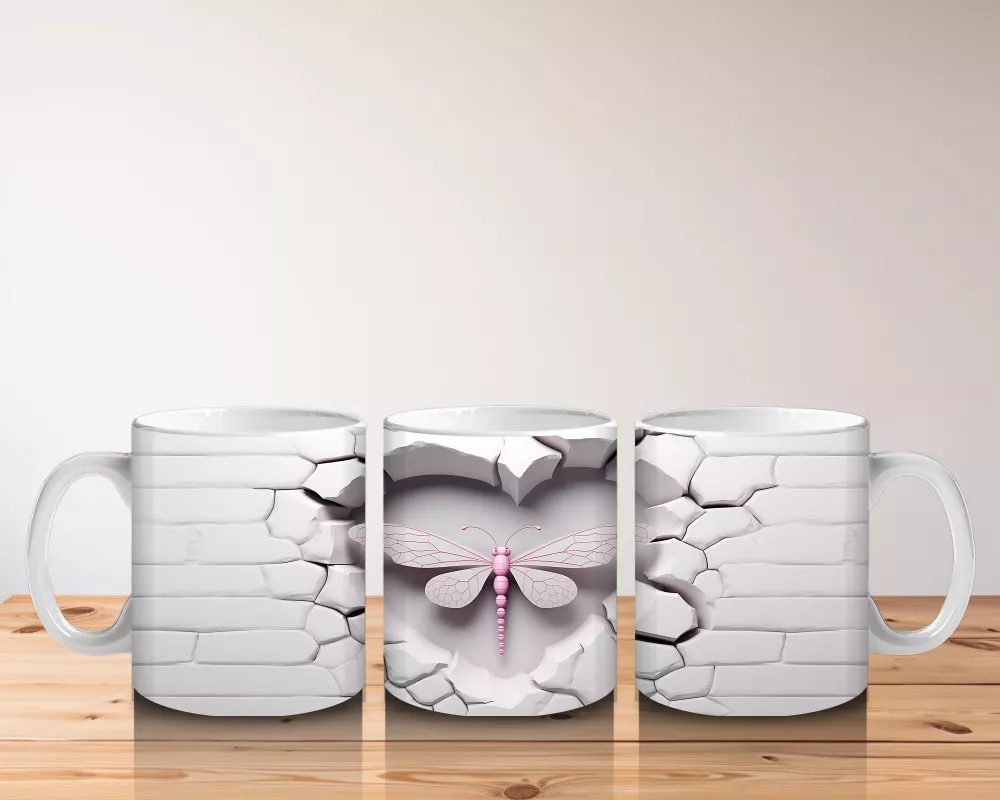 Beyaz Tuğla Zemin Üzerinde Simetrik Yusufçuk – Baskılı Kahve Kupası