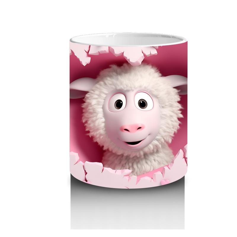Çocuklara Sütü Sevdiren Kalp Çatlağından Bakan Şirin Kuzu Kupa Bardak