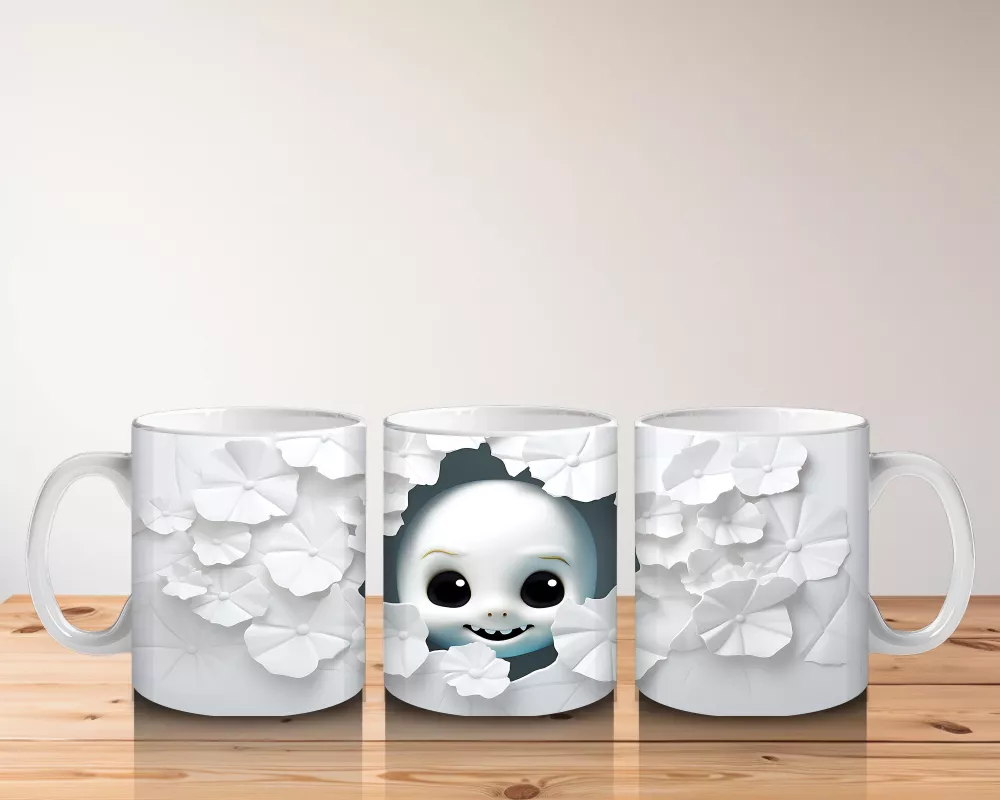 Sıcak ışıklar eşliğinde gülümseyen sevimli hayalet tasarımıyla bu Cadılar Bayramı baskılı kupa, hem neşeli hem nostaljik bir atmosfer sunar. Şık bir hediyelik kahve kupası arayanlara özel.