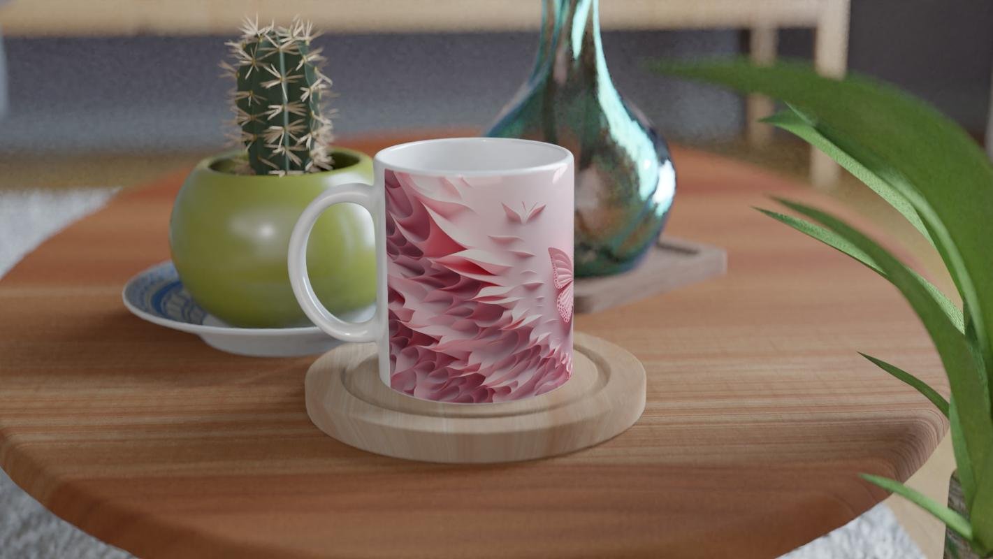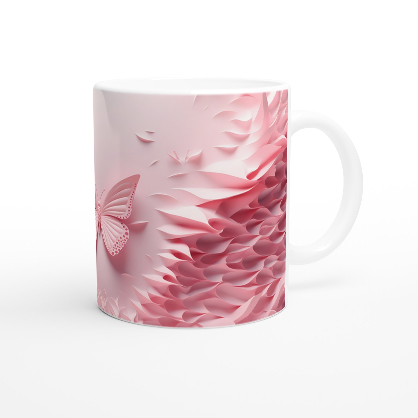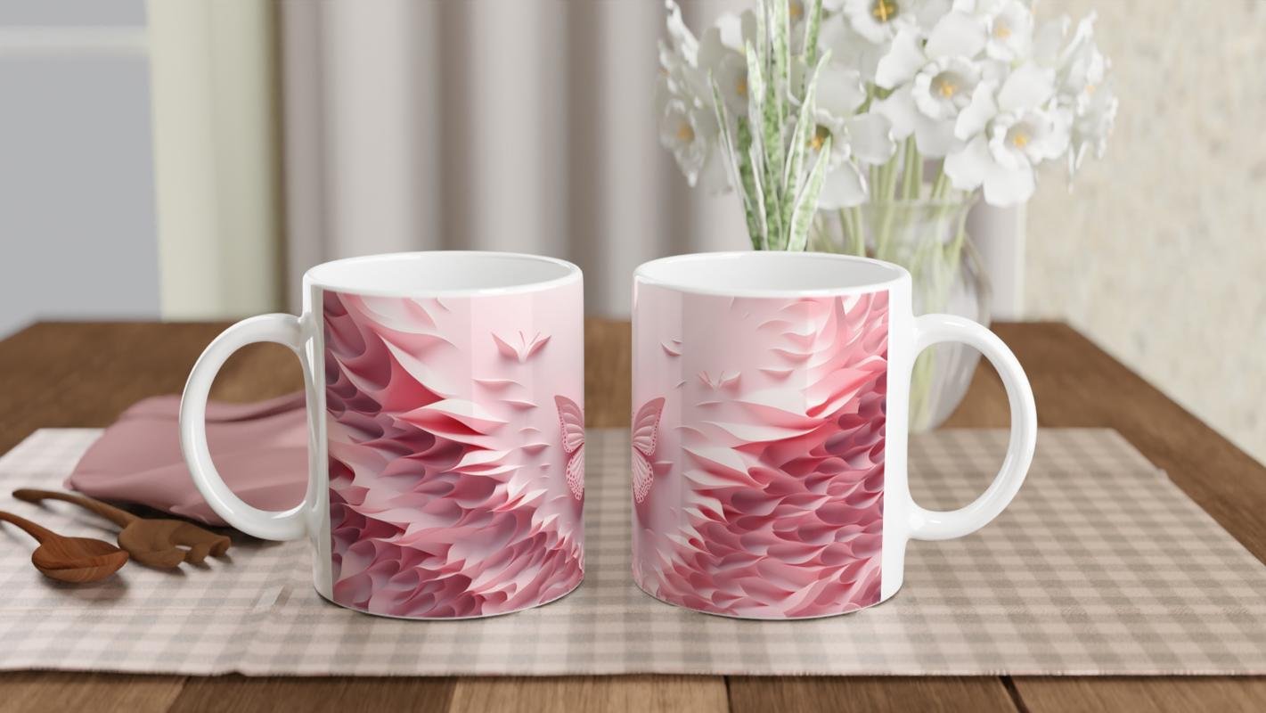 Pembe Kanatların Dansı: Soyut Kelebek Desenli Baskılı Kupa Bardak, içeceğinizle birlikte huzur ve sanatsal bir dokunuş sunar. İnce detaylarla bezenmiş kelebek figürü, soyut dokulu arka planla birleşerek kupa tasarımına romantik ve modern bir görünüm kazandırıyor.