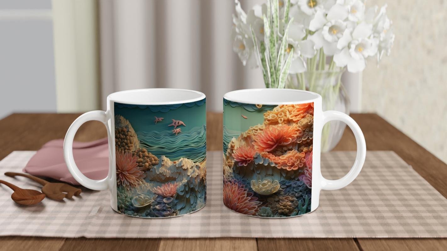 Su altı temalı kupa bardaklarımızda kullanılan süblimasyon baskı, canlı renk geçişleri ve yüksek detay seviyesiyle okyanus hissini görsel olarak yansıtır. Tüm baskılı ürünlerde olduğu gibi uzun ömürlü kullanım için elde yıkama önerilir.