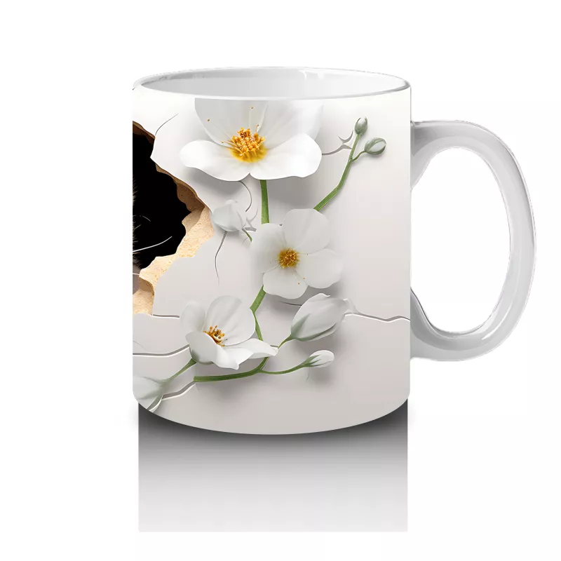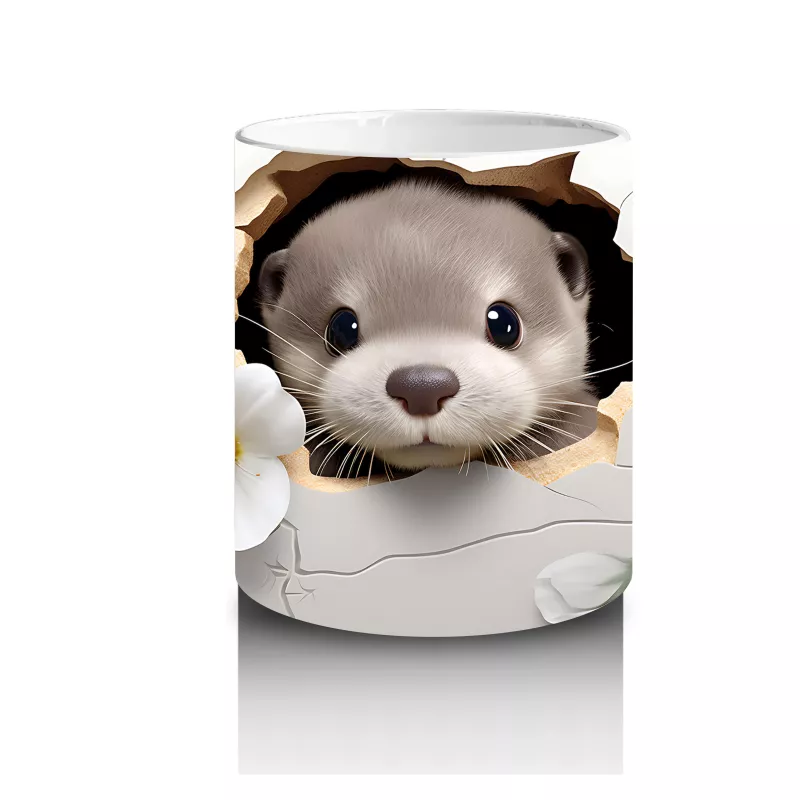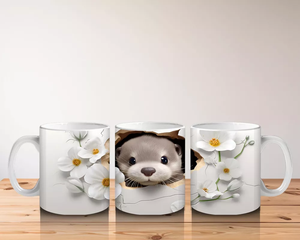 Beyaz Çiçeklerle Süslenmiş Tatlı Su Samuru – Baskılı Kahve Kupası