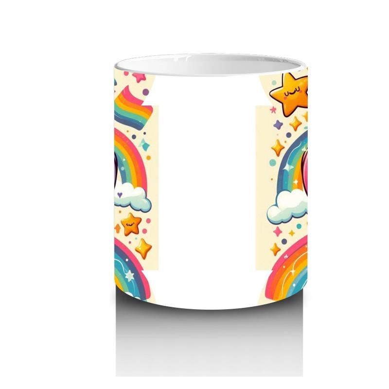 Çocuklara Sütü Sevdiren Gökkuşağı Yelesi ve Süt Kupasıyla Sevimli Aslan Desenli Kupa Bardak