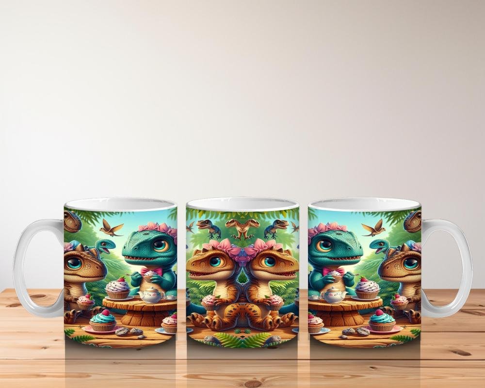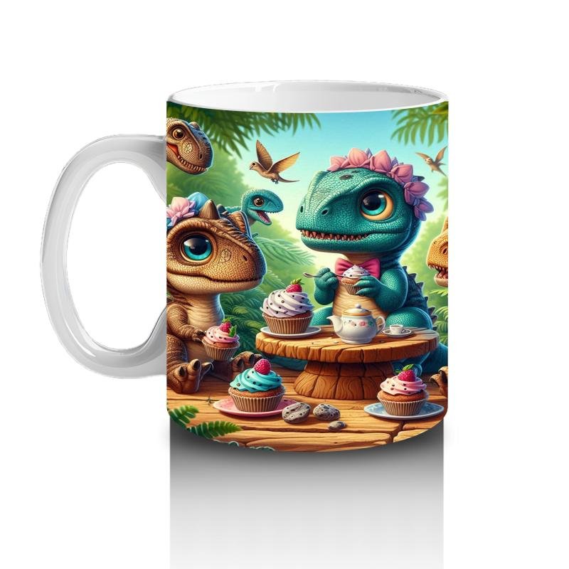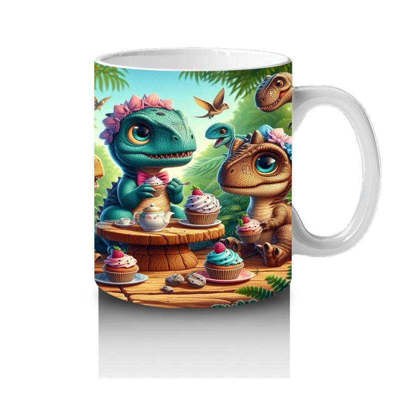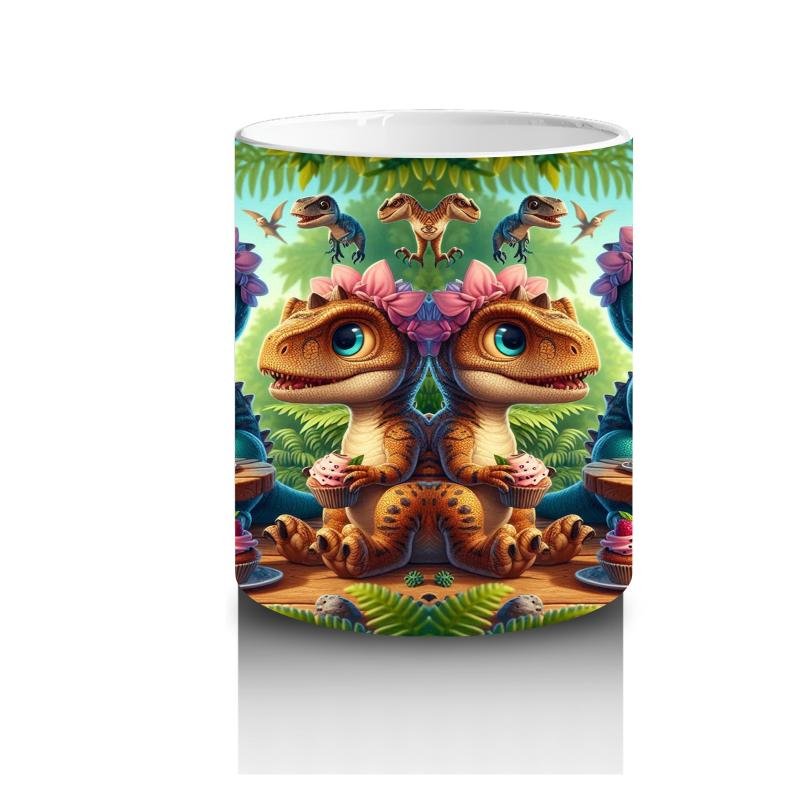 Çocuklara sütü sevdiren Tatlı Yiyen Sevimli Dinozorlar Desenli Kupa Bardak tasarımlı kupa bardak. Neşeli, eğlenceli ve özel anlar için ideal hediye seçeneği.