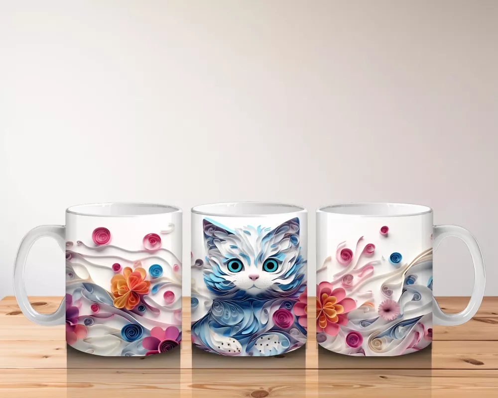 Çiçeklerle Süslenmiş Tatlı Kedi – Baskılı Kahve Kupası