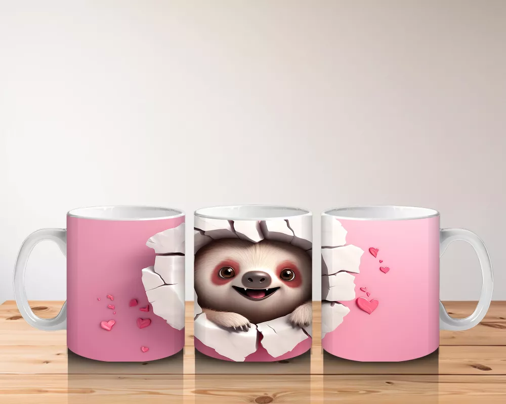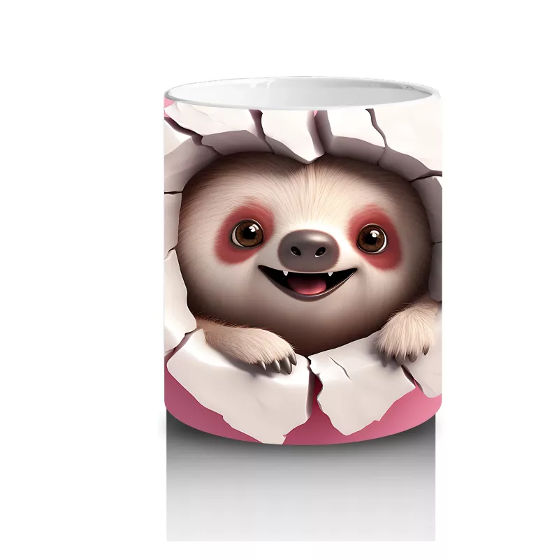 Pembe Çatlakta Gülümseyen Sevimli Tembel Hayvan – Baskılı Kahve Kupası