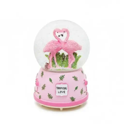 Tropical Love: Pembe Flamingo Temalı Işıklı Kar Küresi