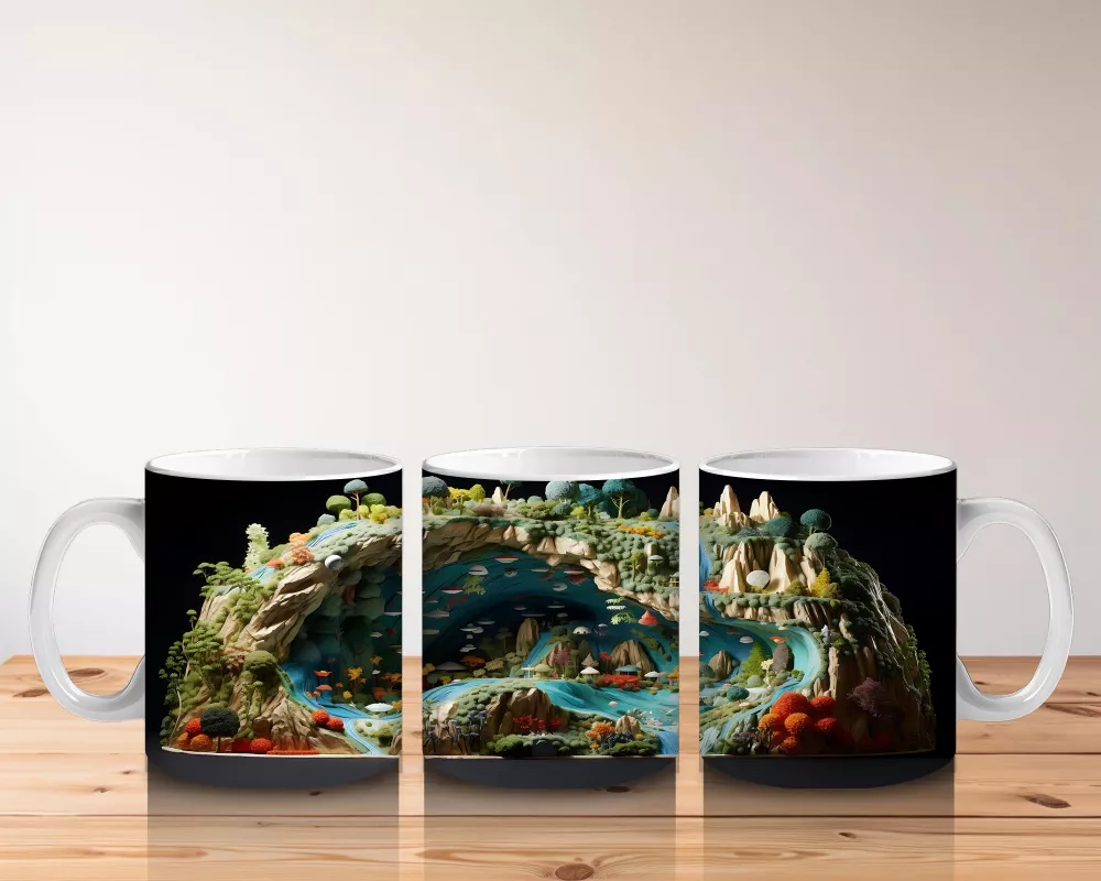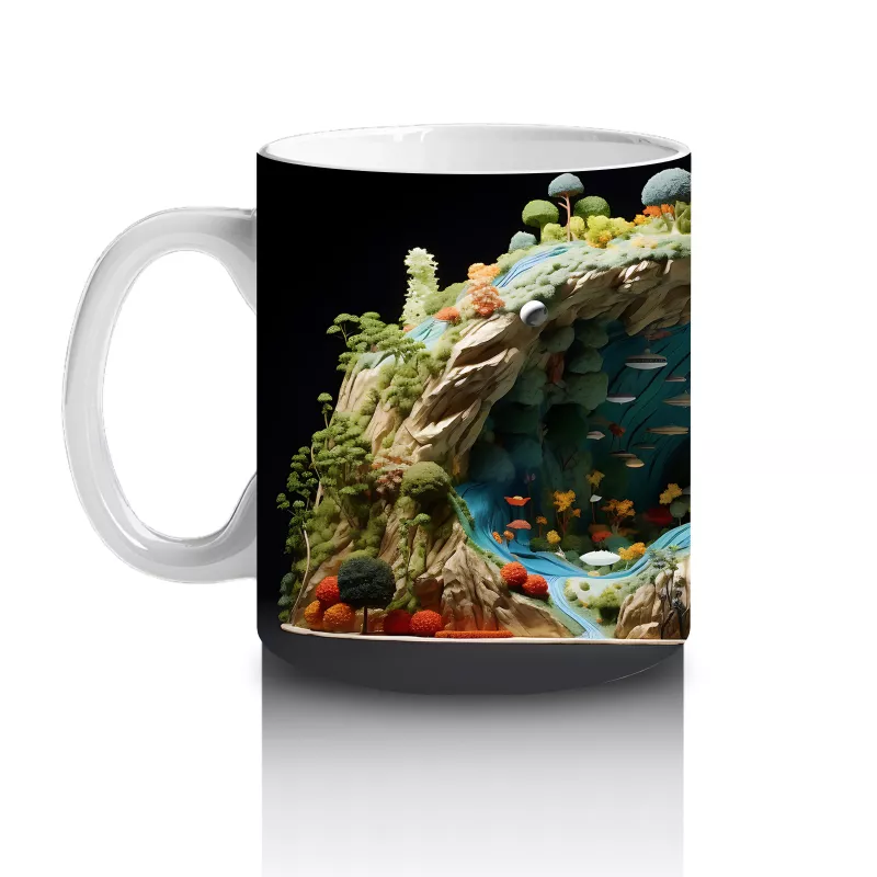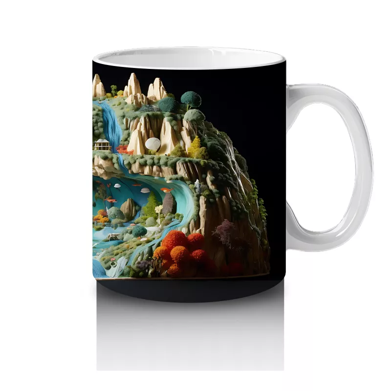 Doğal Göl Manzarasında Tropikal Kertenkele – Baskılı Kahve Kupası