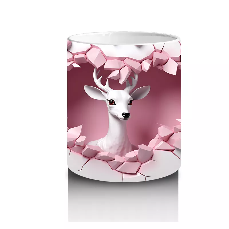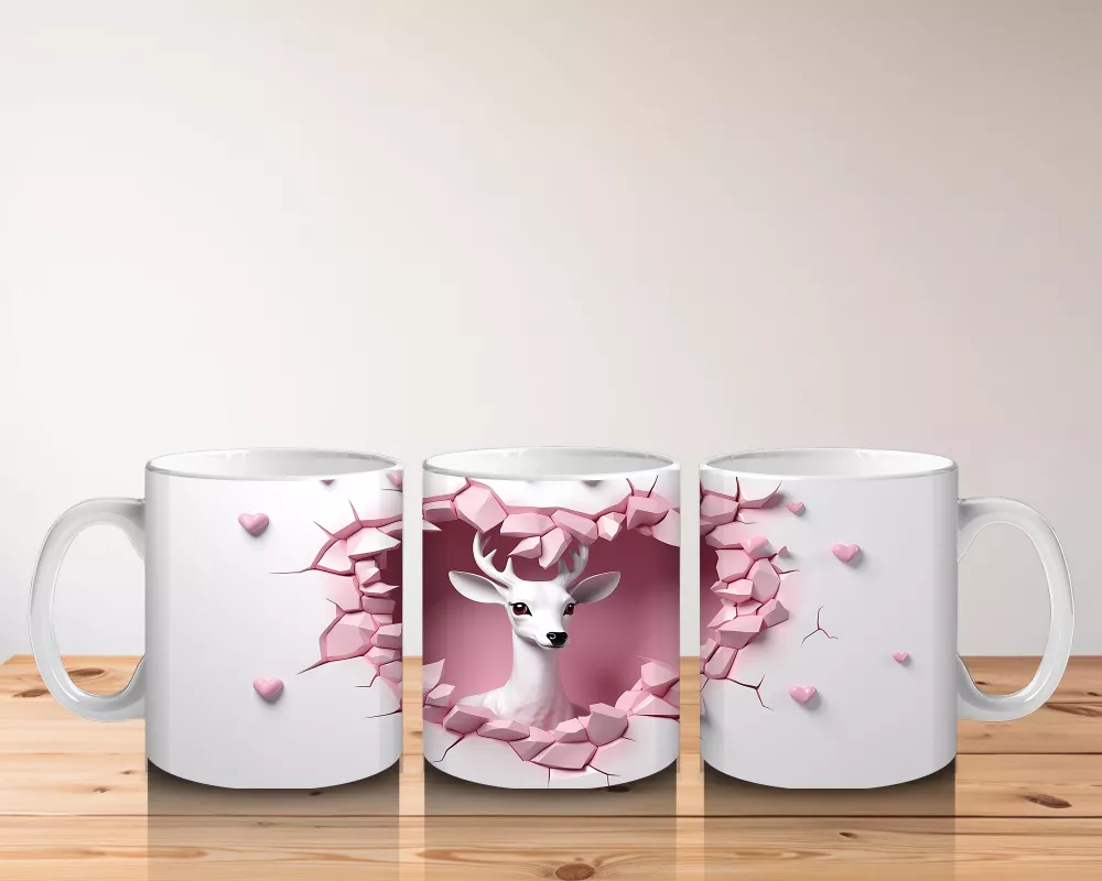 Kalpli Çatlakta Uçan Pembe Geyik – Baskılı Kahve Kupası