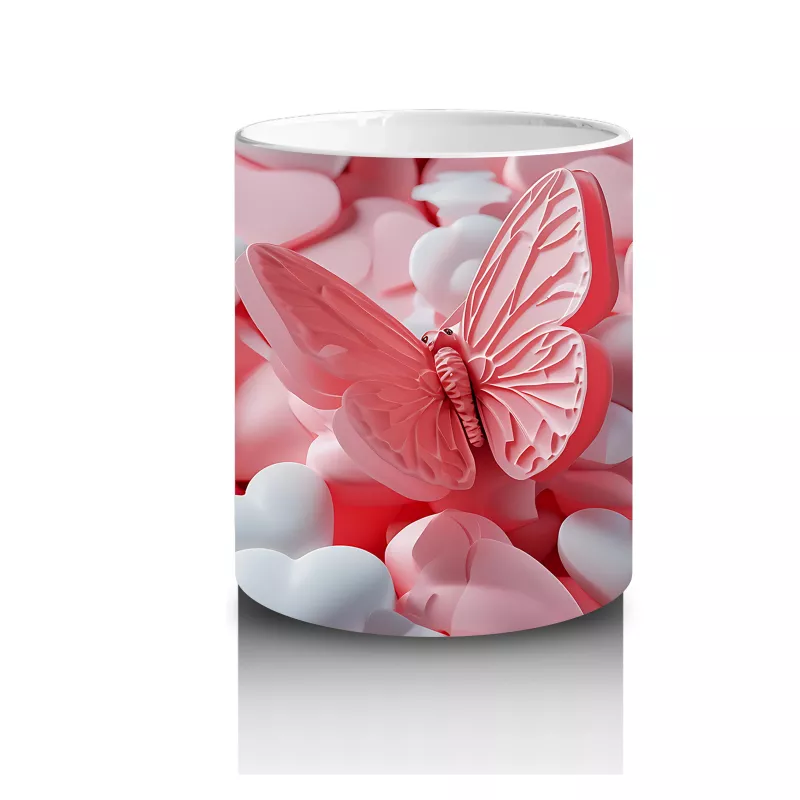 Gri Duvarda Çift Kanatlı Pembe Kelebek – Baskılı Kahve Kupası