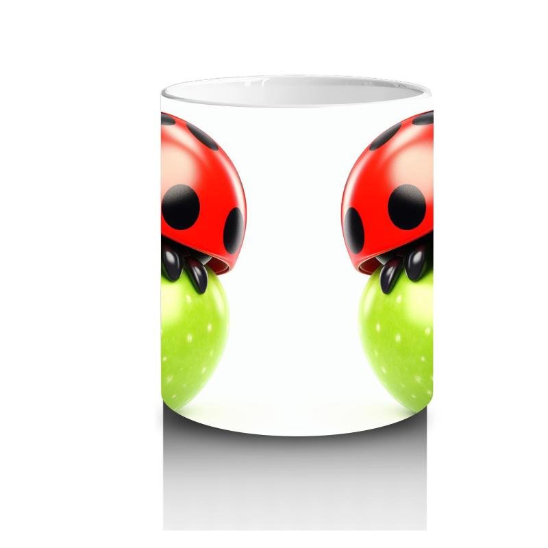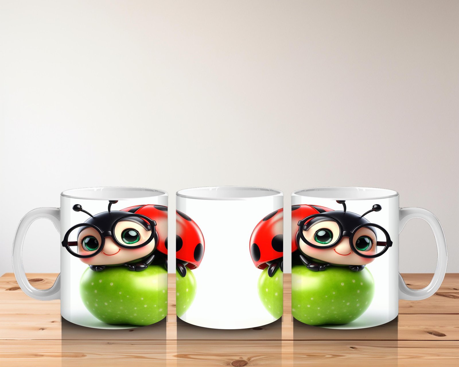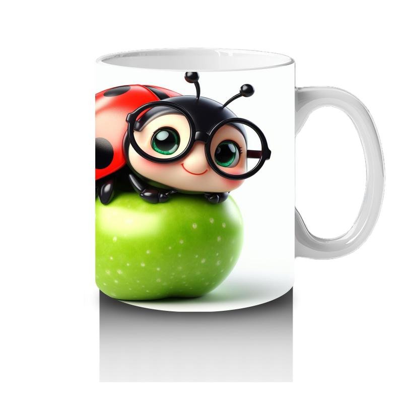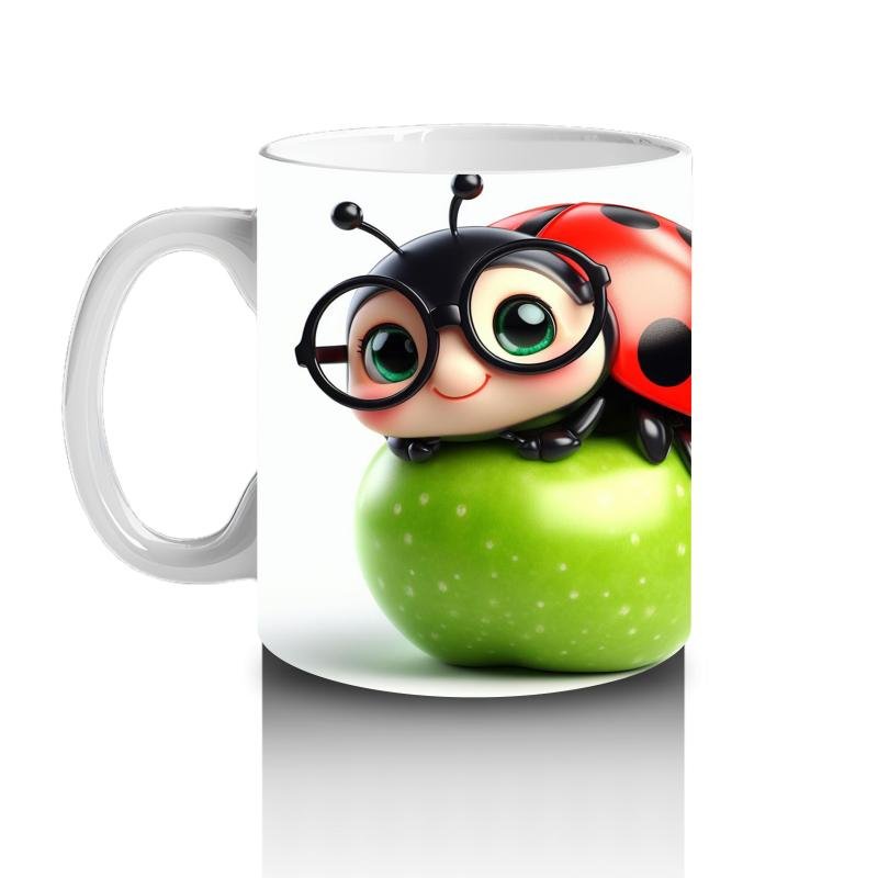 Çocuklara Sütü Sevdiren Gözlüklü Uğur Böceği ve Elma Desenli Kupa Bardak