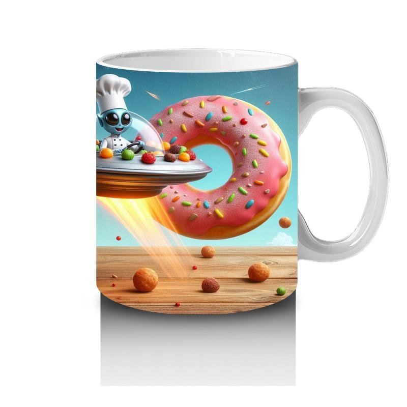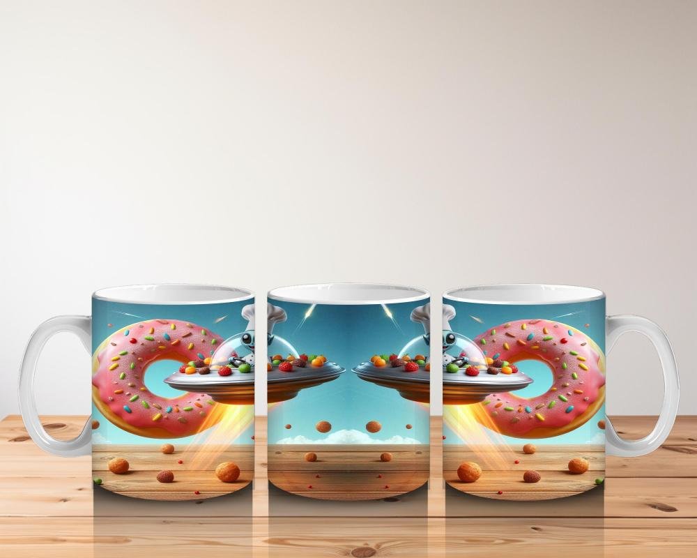 Çocuklara sütü sevdiren Uçan Donut ve Şef Fareli Uzay Gemisi Desenli Kupa Bardak tasarımlı kupa bardak. Neşeli, eğlenceli ve özel anlar için ideal hediye seç…