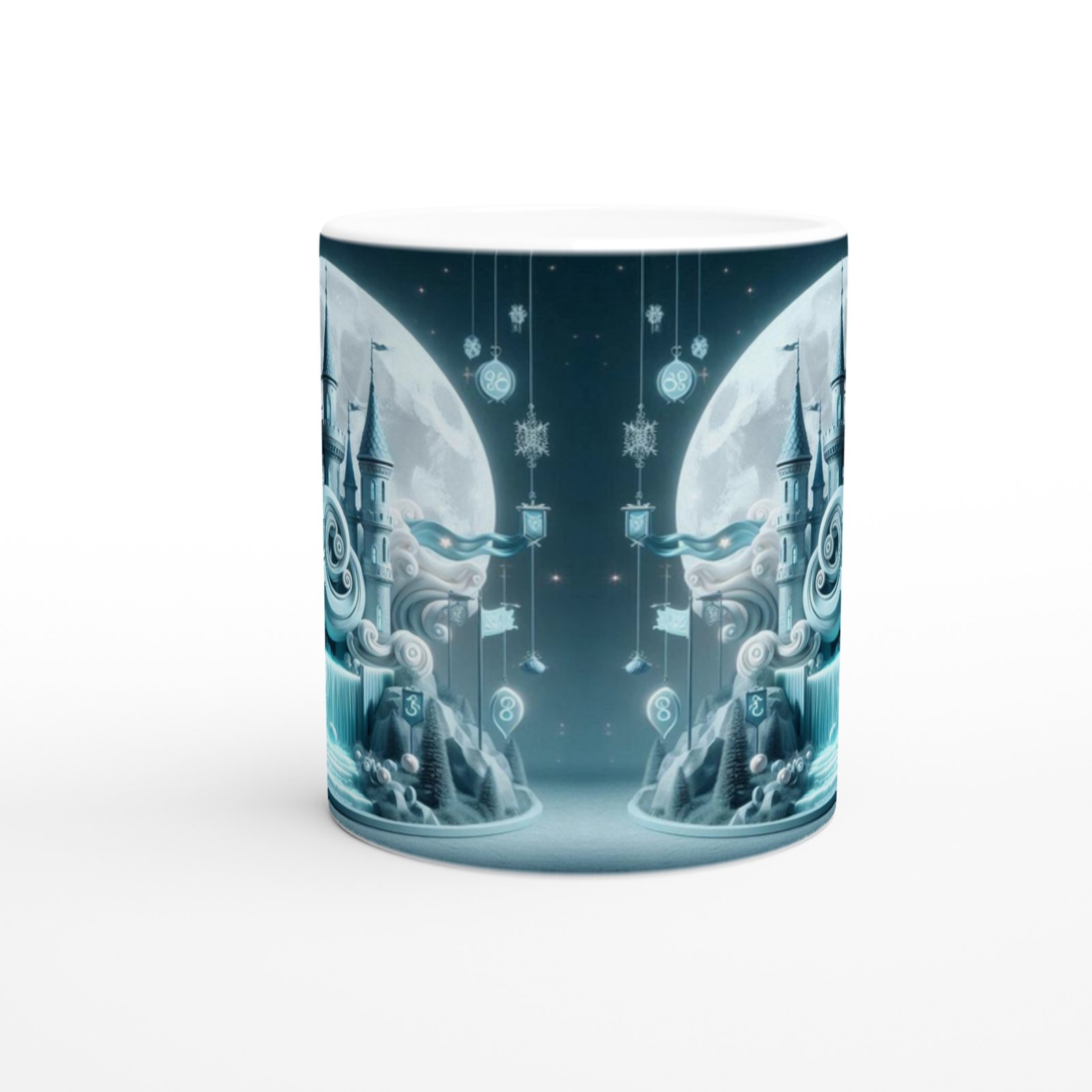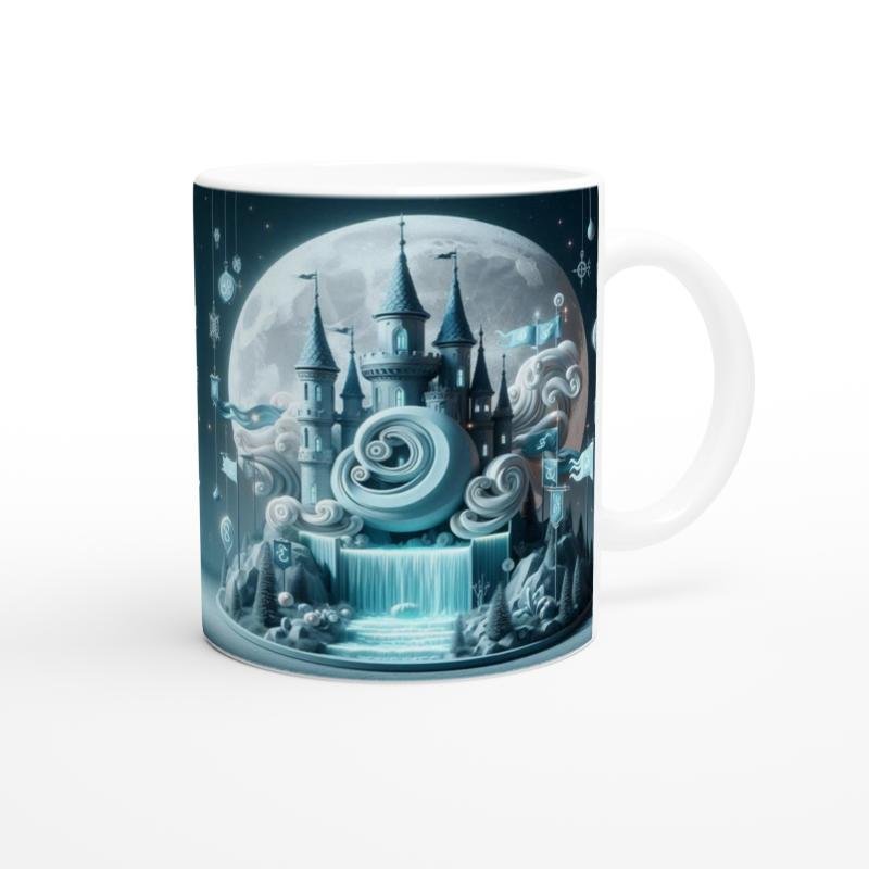 Samimiyeti ve güveni seven Yengeç burcu için tasarlanmış şato temalı özel kupa bardak.