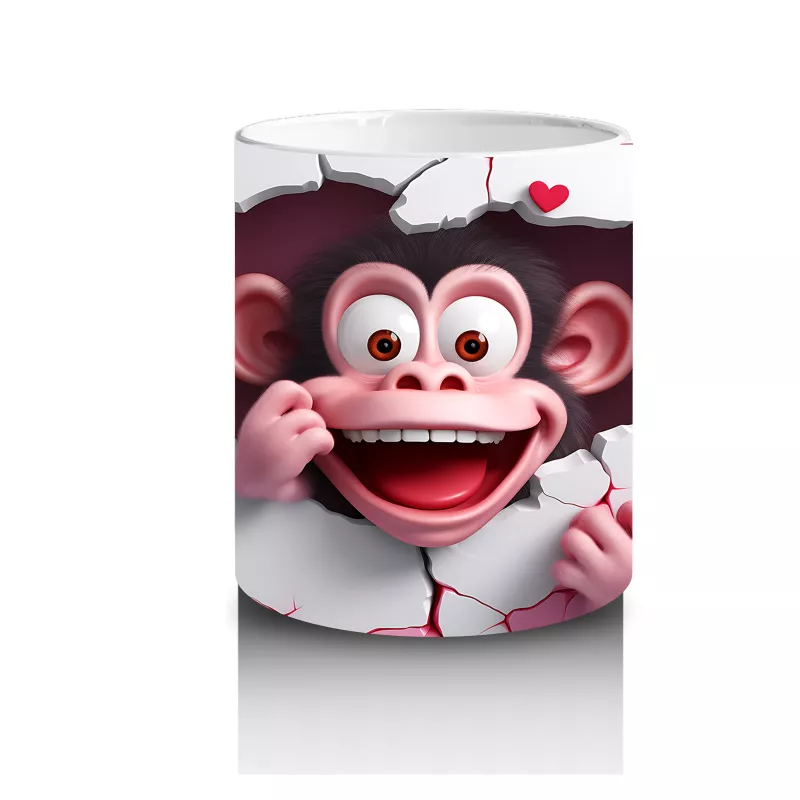 Yırtık Duvar Efektli Sevimli Maymun – Baskılı Kahve Kupası