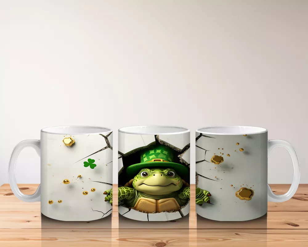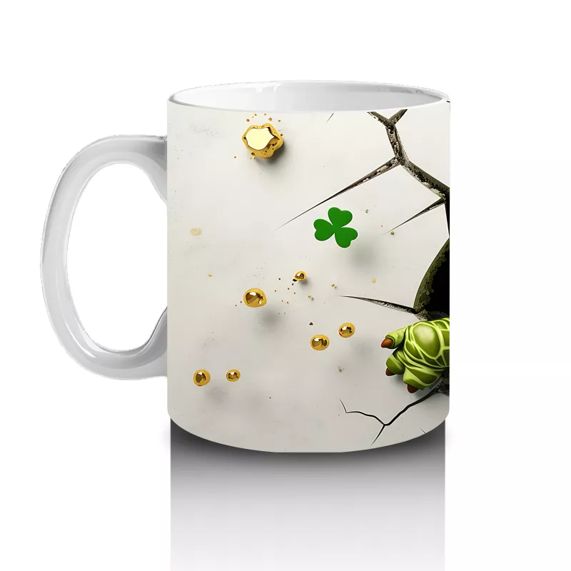 Altın yoncalı şapka takan sevimli kurbağa figürü, şans ve zarafeti bir arada sunuyor. Parlak ve özgün tasarımlar arayanlar için özel bir kupa.