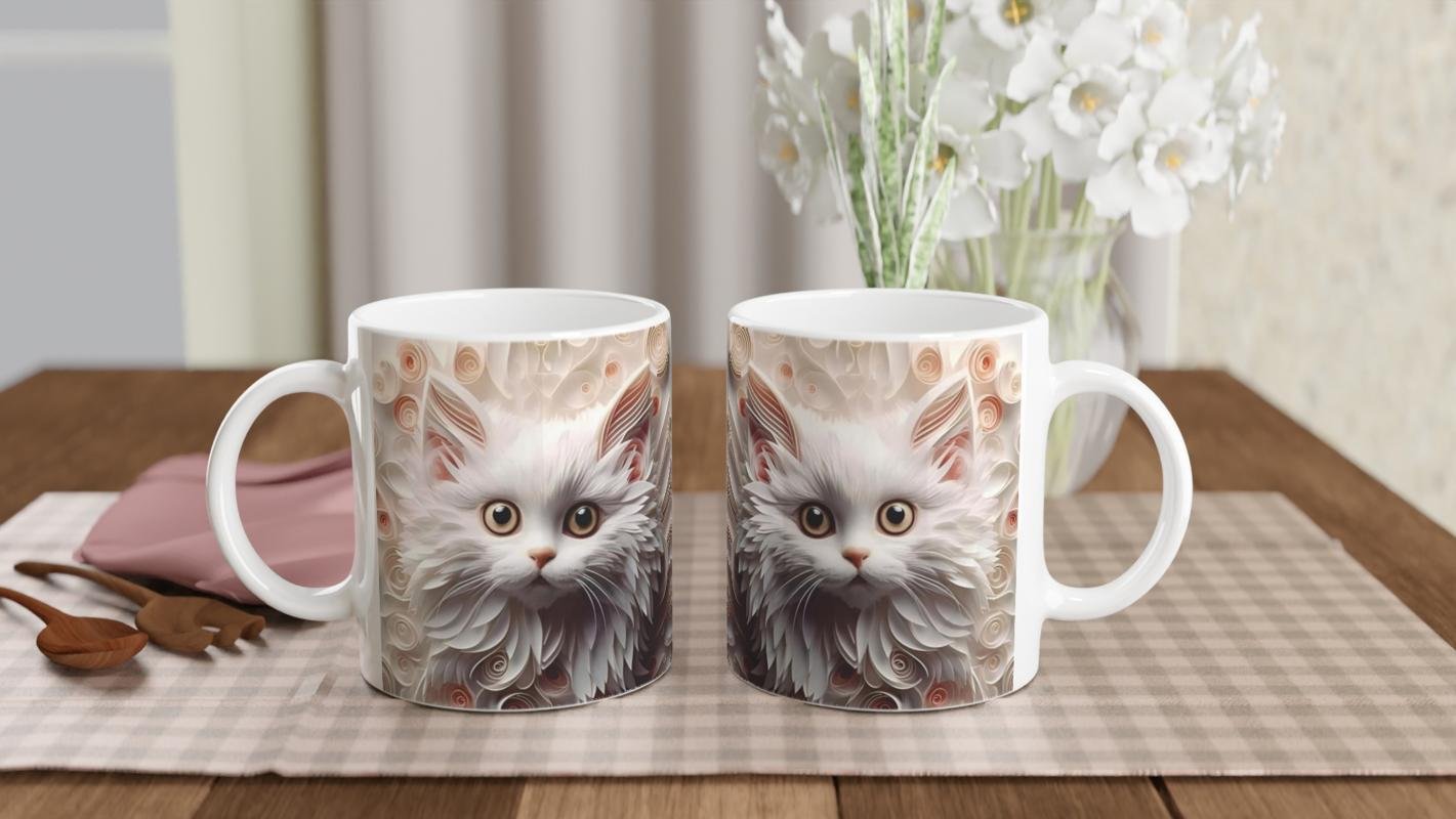 Zarif Byaz Kedi Baskılı Kupa Bardak, pastel tonlardaki kıvrımlı desenlerle oluşturulmuş sevimli bir kediyi yansıtır. Geniş gözleriyle dikkat çeken bu tasarım, özellikle kedi severler ve sanatsal detaylara ilgi duyanlar için mükemmel bir hediye seçeneği. Gündelik kahve anlarınıza estetik bir dokunuş katar.